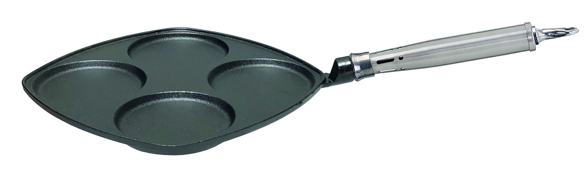 Upptäck Ägg- & Blinipannan från Ronneby Bruk, perfekt för att laga fyra blinier eller ägg samtidigt. Idealisk för frukost och brunch!