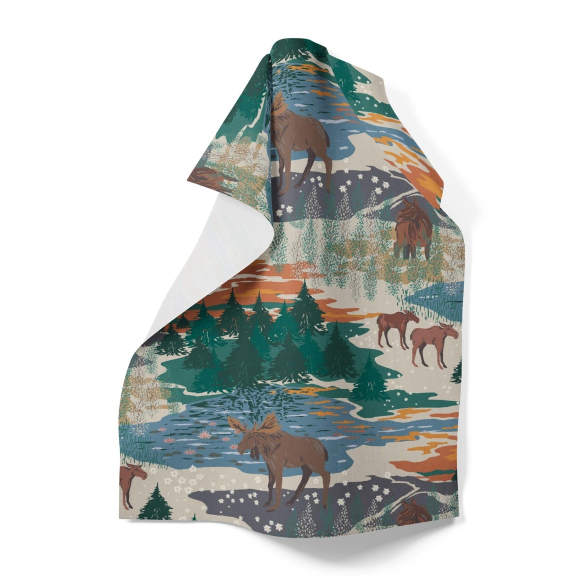 - Färg och mönster: Beige/grön palett med älgar och skogsmotiv