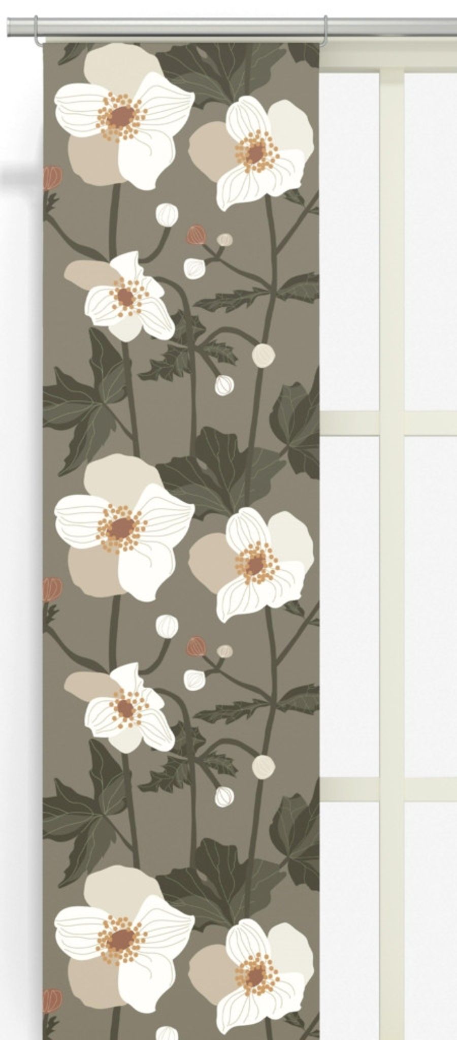 Anemon beige – panellängd 2-pack från Arvidssons Textil. Elegant och tidlöst blomsterprint i neutrala nyanser som passar de flesta inredningar. tillverkad i 100% bomull för mjukt fall och naturlig känsla. Levereras som två paneler och är enkel att montera i standard gardinräckesystem. Designer: Linda Svensson Edevint.