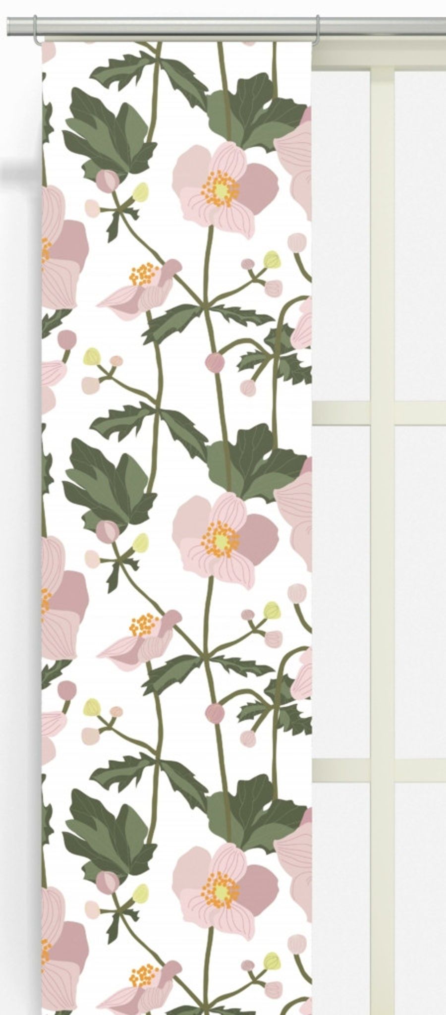 Upptäck Anemon rosa panellängd 2-pack från Arvidssons Textil, designad av Linda Svensson Edevint. Dessa två paneler ger ett mjukt, stilfullt insynsskydd och ljusfiltrerande effekt med ett varmt rosa anemonmönster. Perfekt för vardagsrum, sovrum eller kök där du vill skapa ombonad atmosfär.