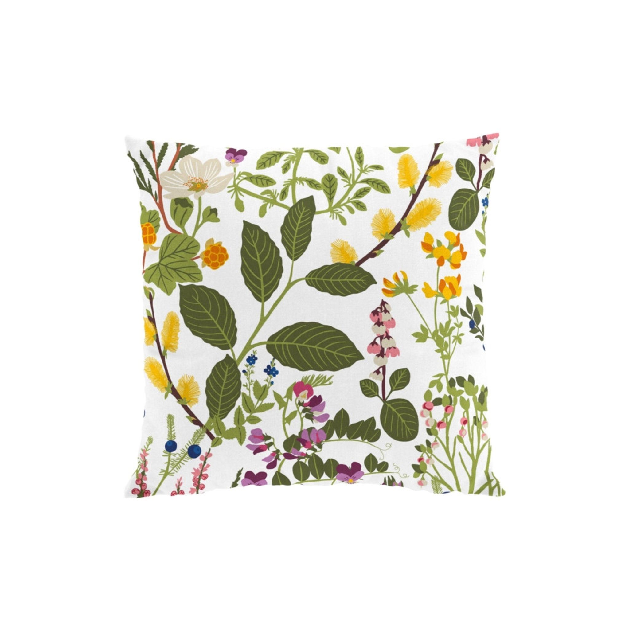 Ångermanland multi kuddfodral från Arvidssons Textil i bomull med ett färgstarkt botaniskt mönster i multi-färger. Designat av Edholm Ullenius, det här kuddfodralet ger rummet en naturlig och lekfull prägel samtidigt som det är mjukt mot huden.