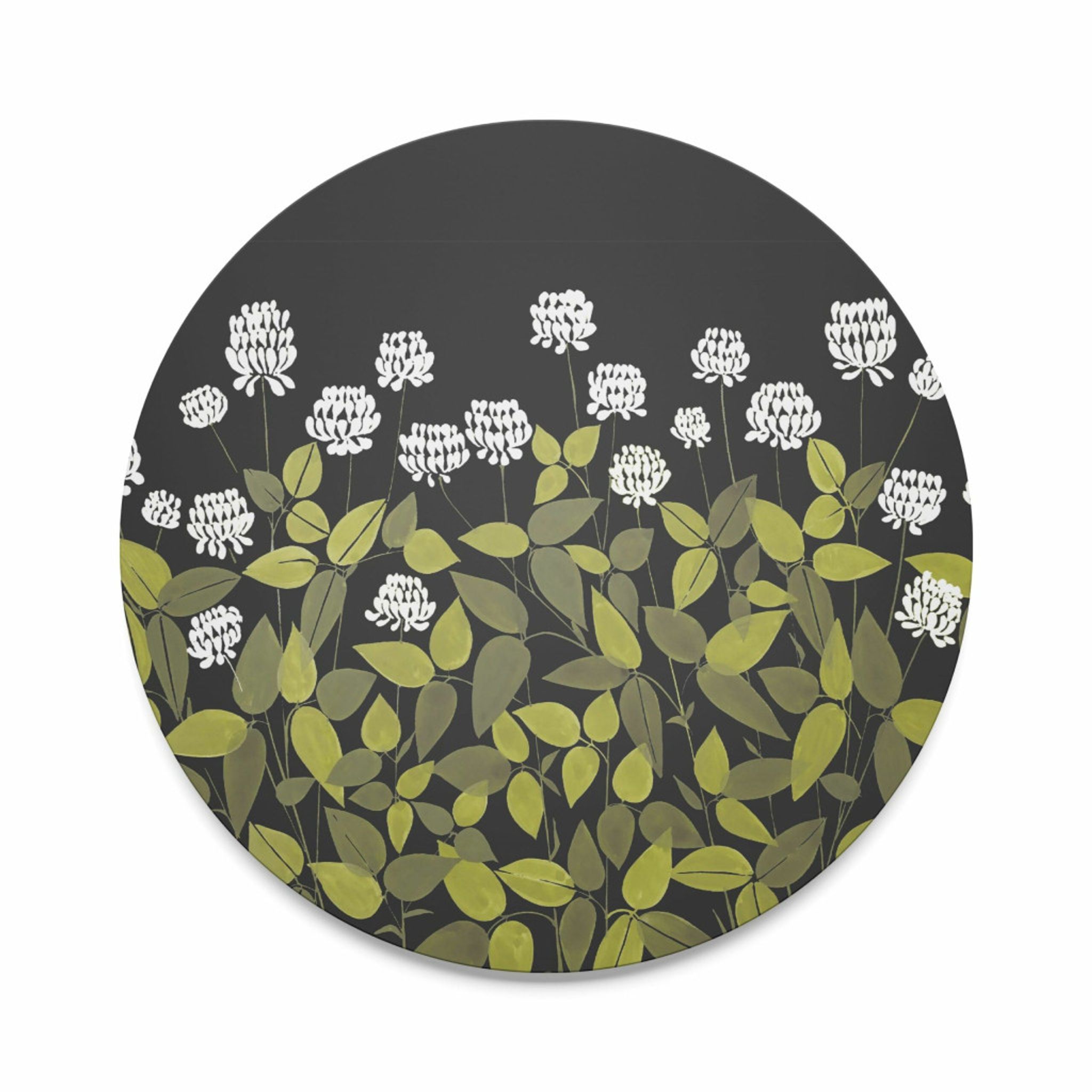 Ängsmark svart runt grytunderlägg från Arvidssons Textil är ett stilrent MDF-underlägg med Minmona blomstrande design. Den runda formen gör det enkelt att skydda köksbordet vid servering och dukning, samtidigt som det tillför en naturnära touch.