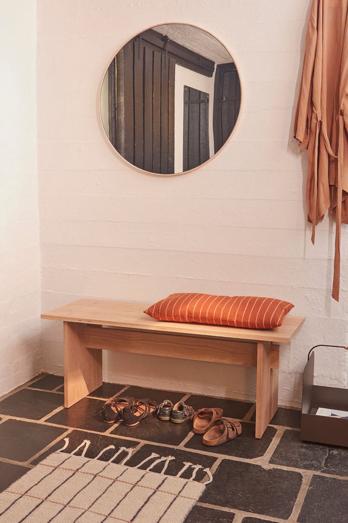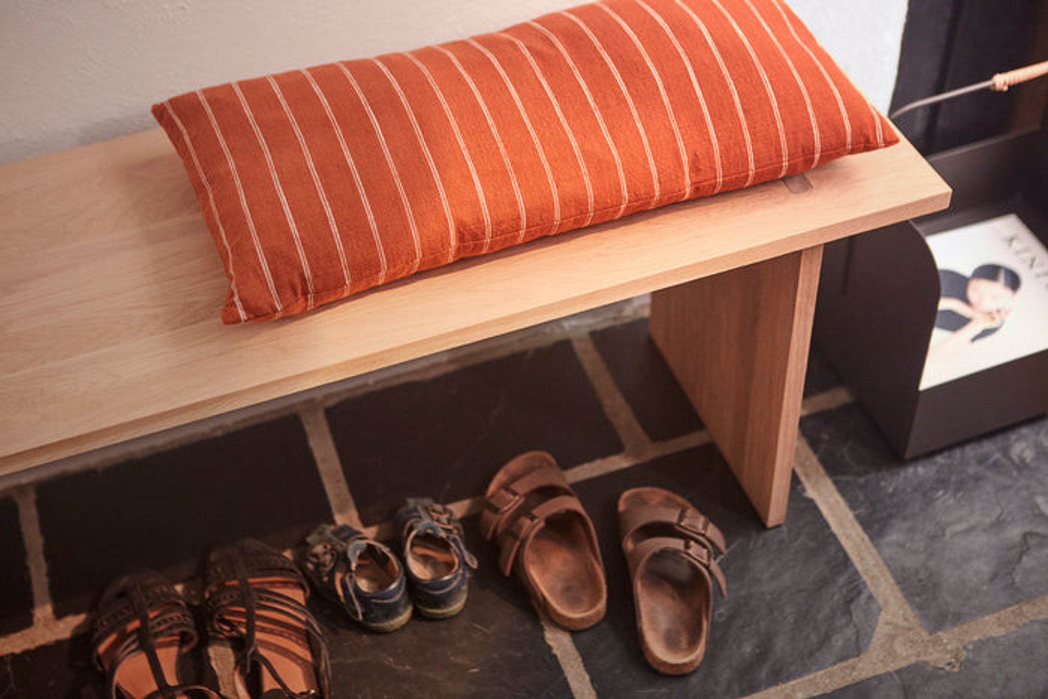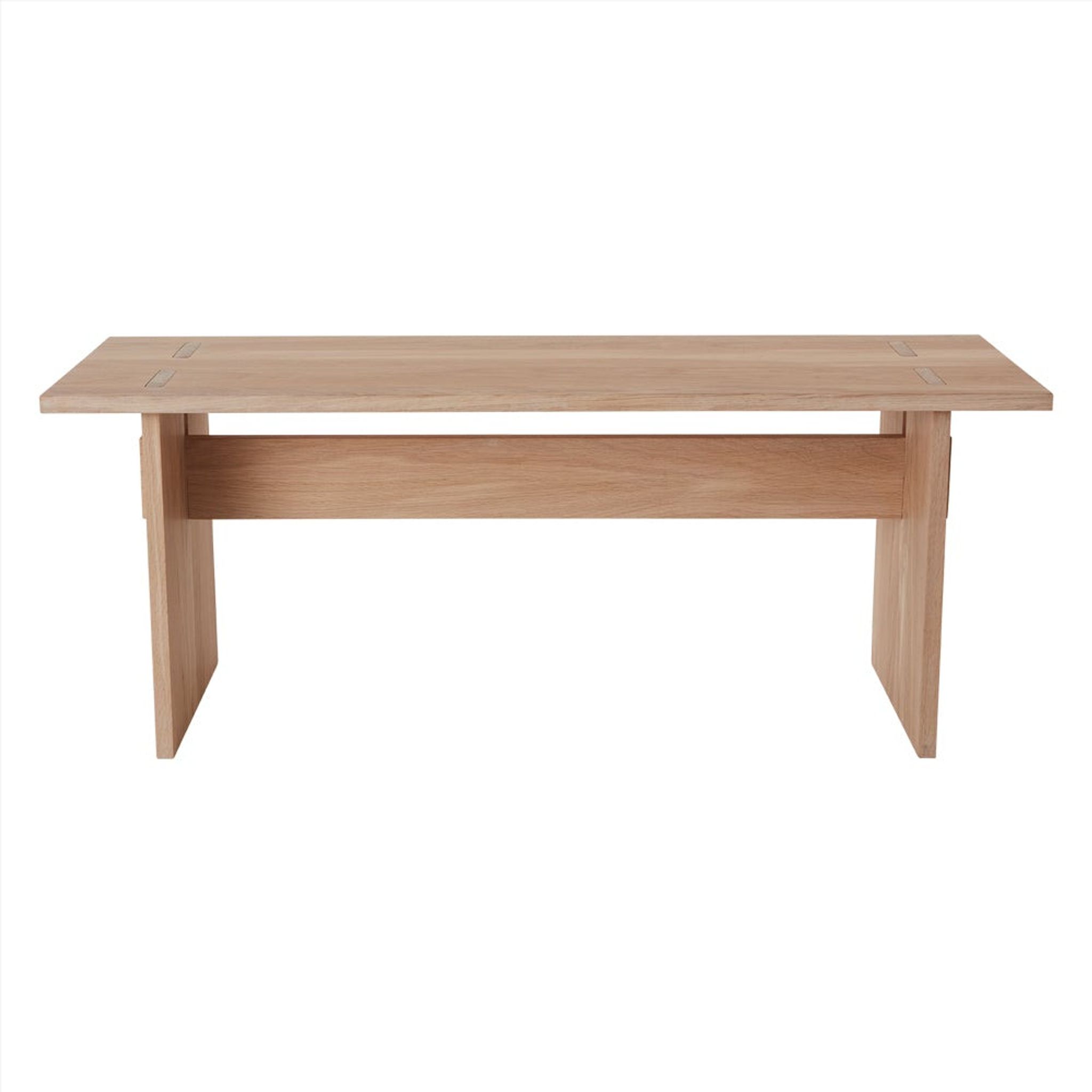 Kotai bänk i 100% ek — en stabil sittbänk som passar i din hall, vardagsrum eller på en täckt uteplats. Den ger värme åt rummet och extra sittplats när du behöver, samtidigt som formen håller länge och fungerar som en praktisk träbänk i flera miljöer.