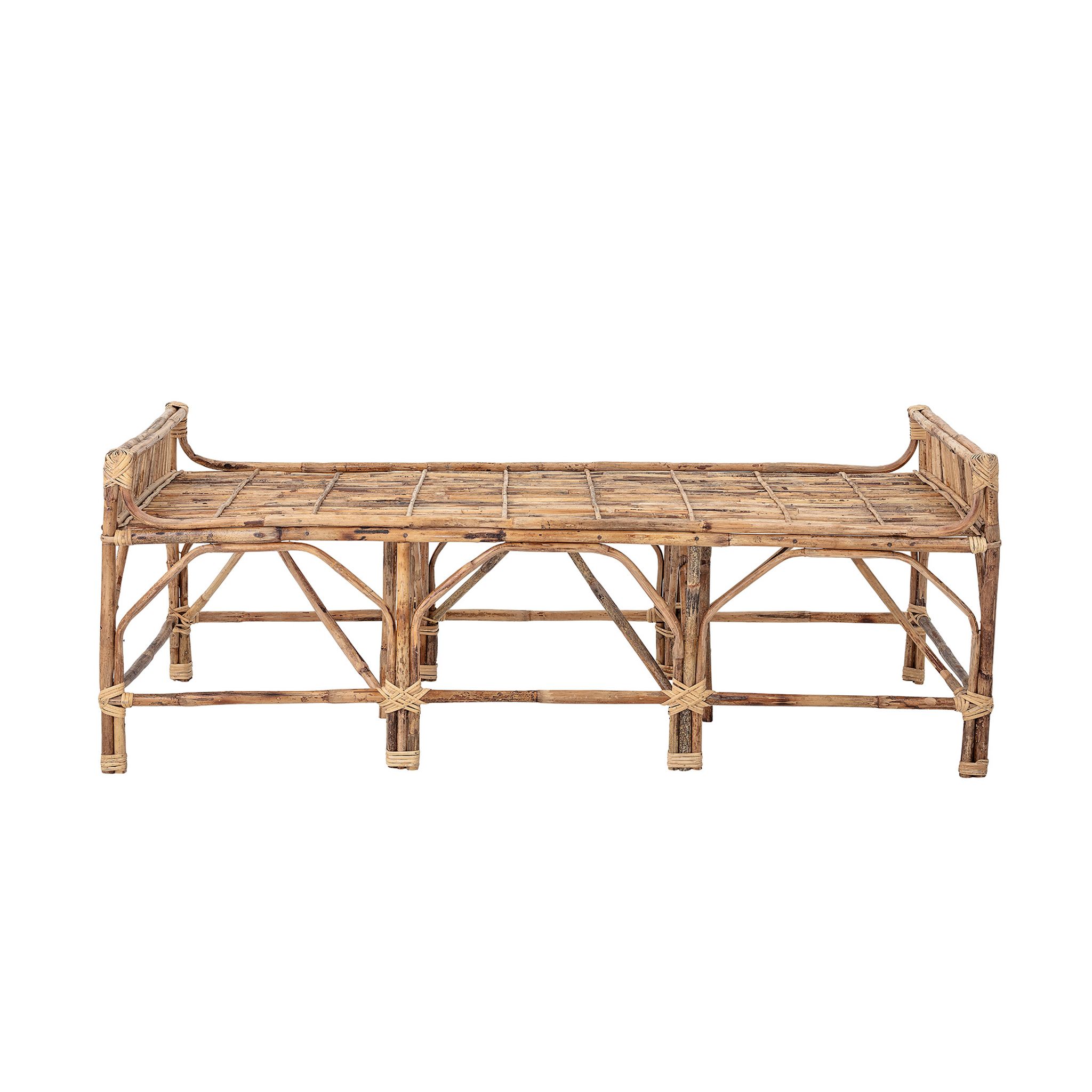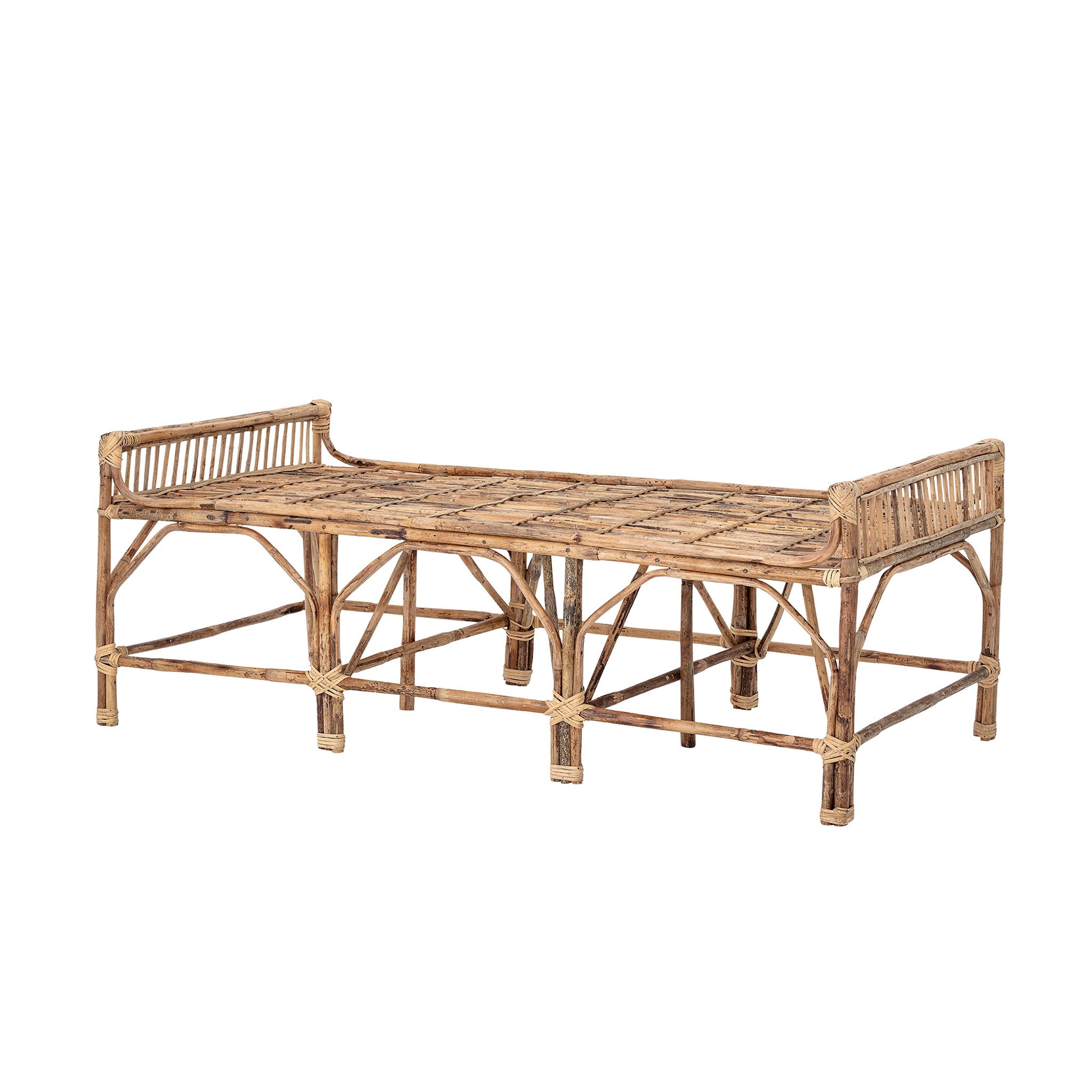 Pammi bänk natur i rotting från Bloomingville, 150×75×57 cm, sitshöjd 44 cm. Snygg och praktisk bänk som passar i din hall eller vardagsrum, funkar bra som extra sittplats, håller länge och klarar 200 kg.