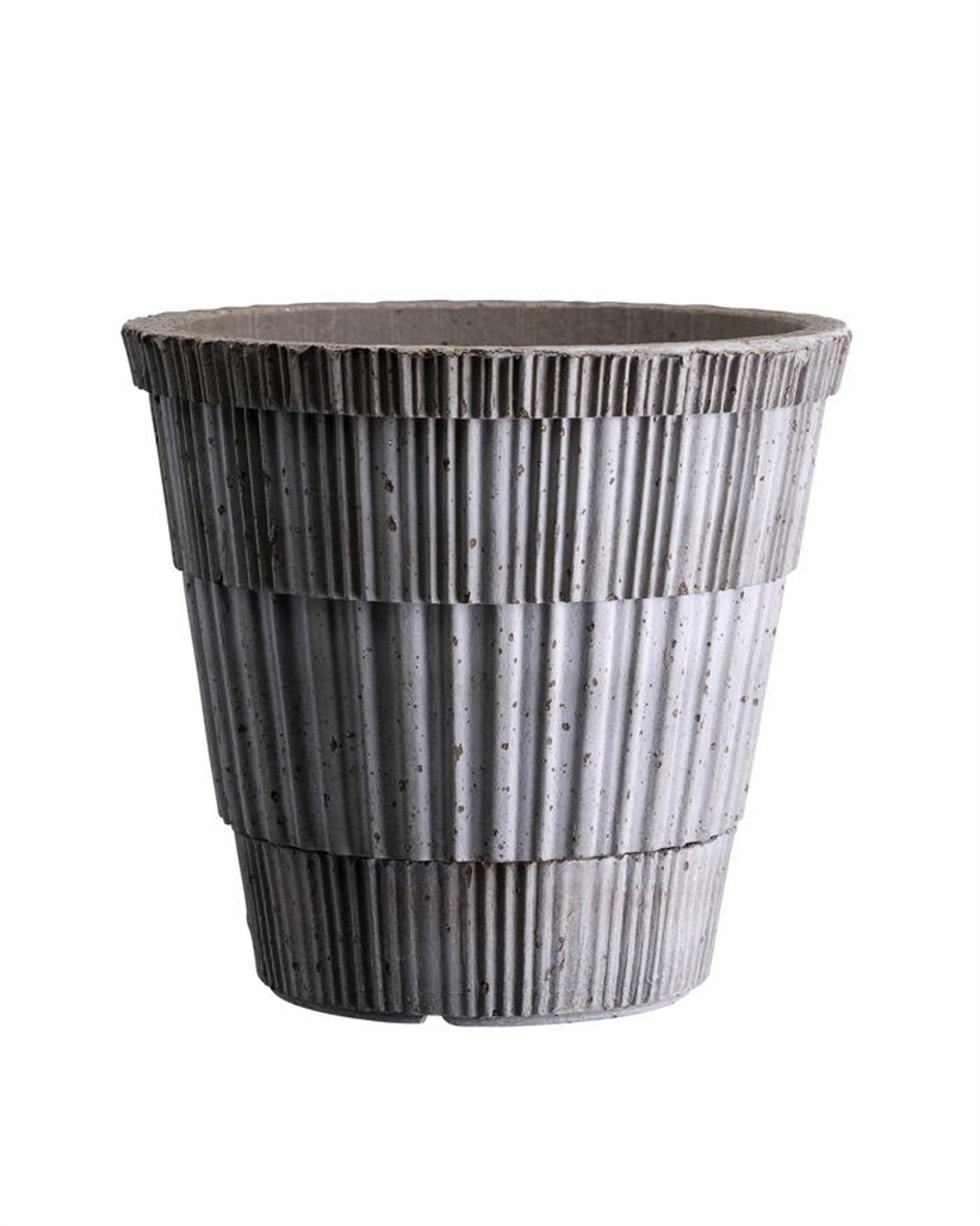 Atlas RAW Grå terrakottakruka (Ø 25 cm) med cirkulära mönster, perfekt för balkongen, uteplatsen eller som dekorativ kruka inomhus.