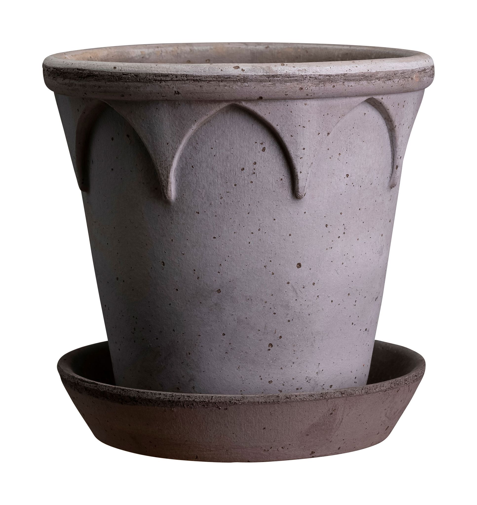 Upptäck Bergs Potters eleganta Elizabeth RAW Kruka med Fat, 25 cm i diameter. En vacker grå nyans som hyllar kvinnor med styrka och grace.