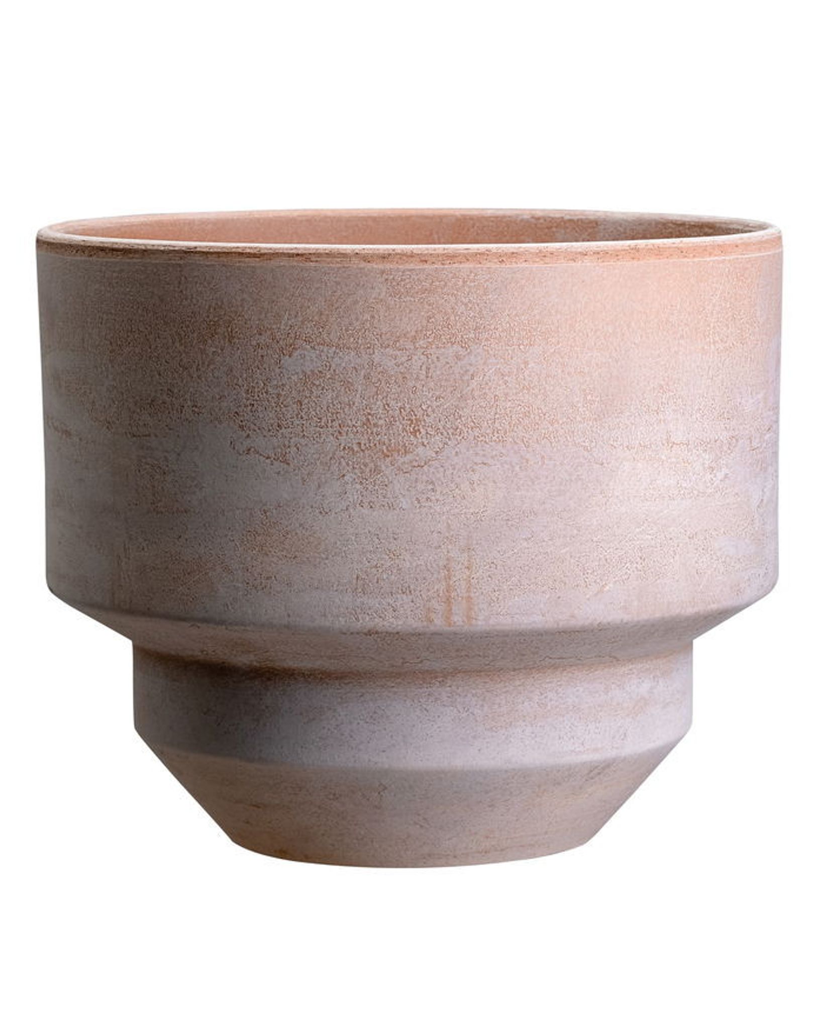 Anne Hoff Hoff RAW Rosa kombinerar rosa nyanser med rå terrakotta för ett tydligt visuellt uttryck. Som terrakottakruka fungerar den både som dekorativ detalj och praktisk kruka för dina växter, inomhus eller utomhus.