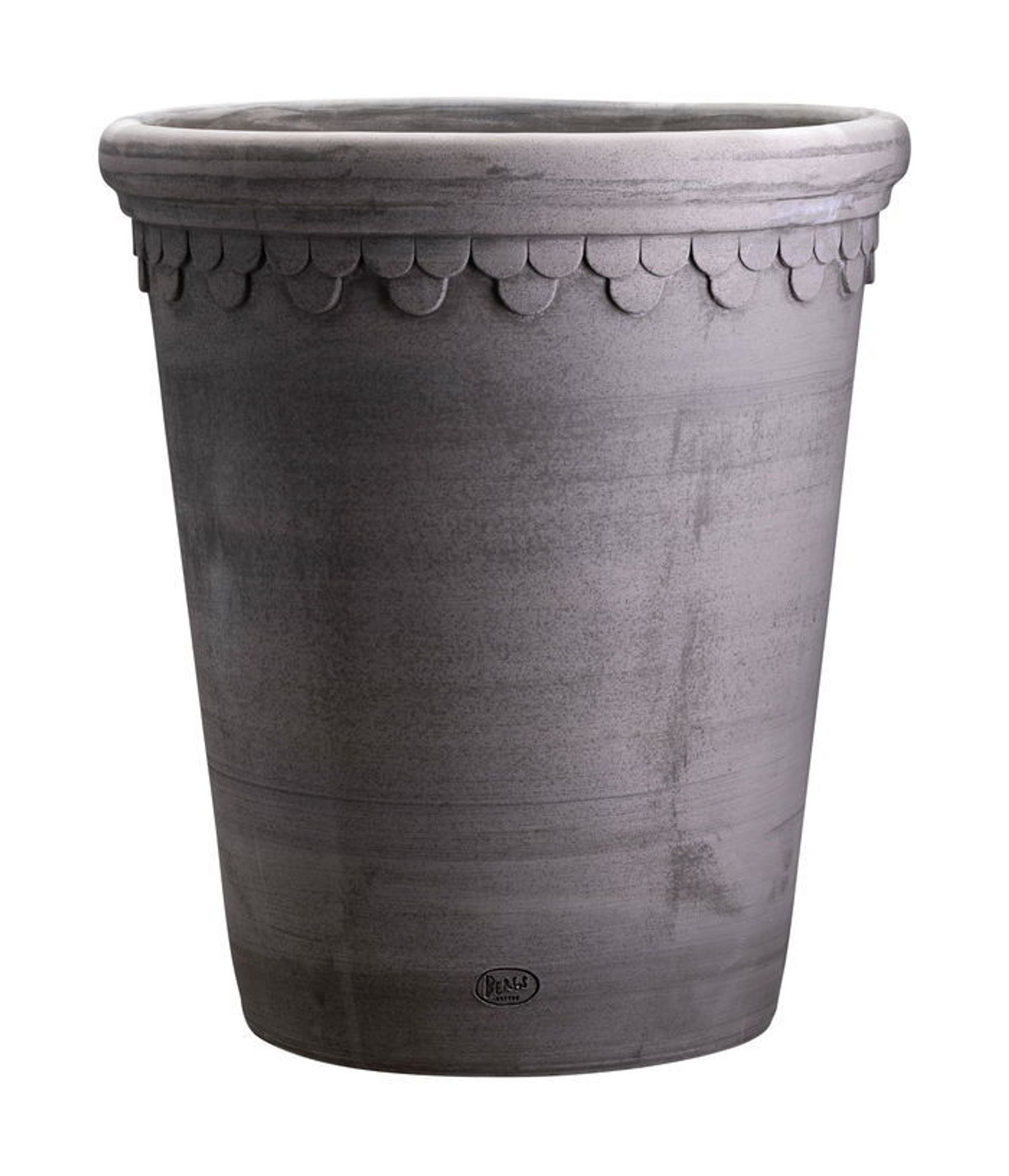 Krukan är utformad för både nya och erfarna växtälskare. Med den generösa diametern kan du skapa livfulla planteringar eller visa upp stora gröna växter. Den neutrala grå färgen fungerar som en bra bas i många inredningar och hjälper dina växter att stå ut.