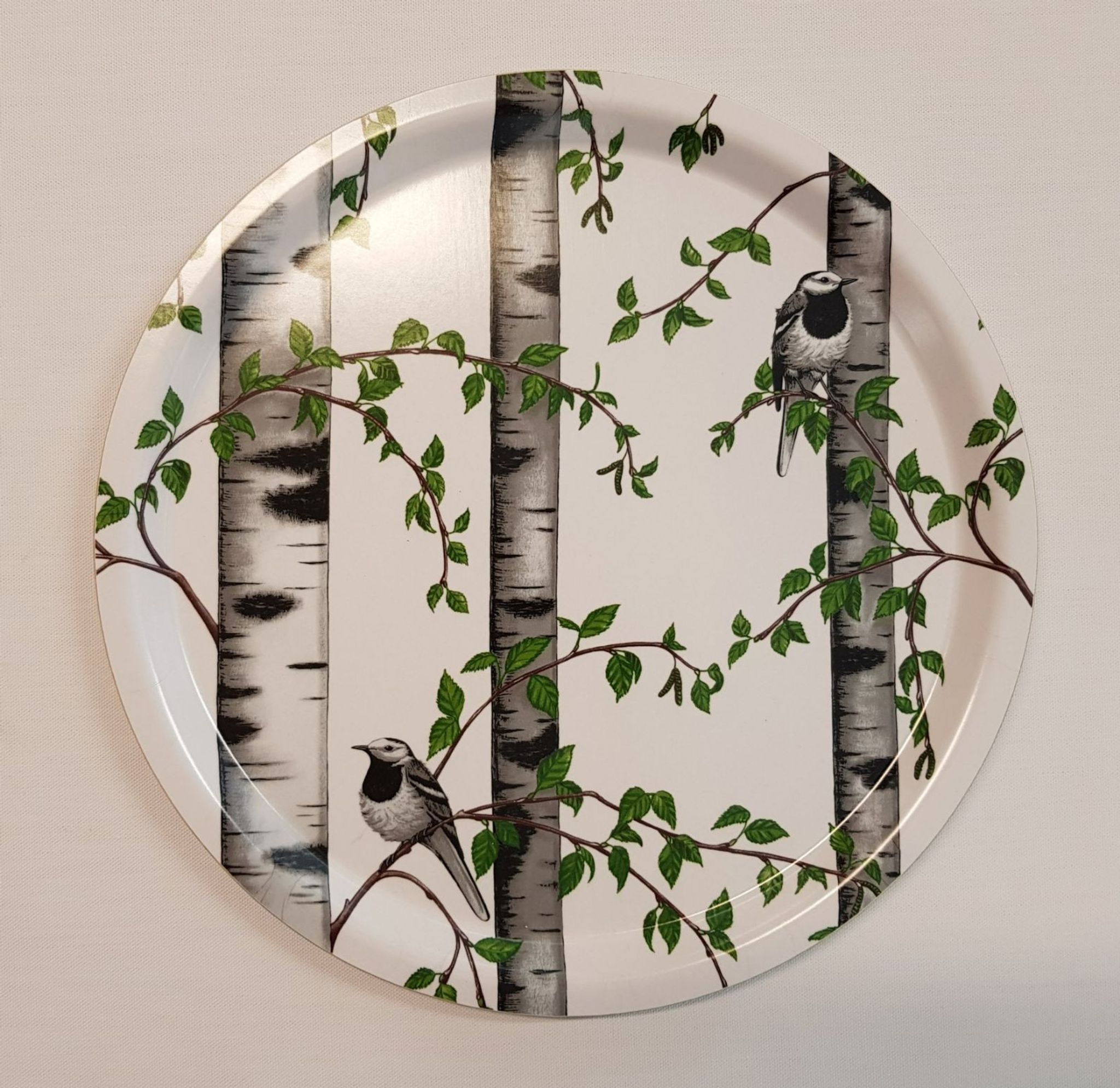 - Design: Handritat mönster med björkar och en sädesärla, som skapar en lugn och harmonisk atmosfär.