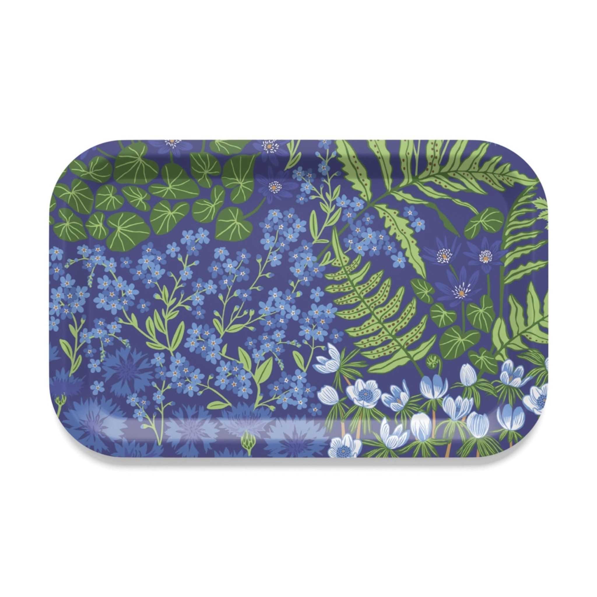 Blå Blom blå bricka från Arvidssons Textil är en stilren serverings- och dekorbricka i blå nyans som lyfter fram varje bord. Tillverkad i björkfanér ger den en hållbar yta med naturlig träkänsla och lång livslängd. Designen Edholm Ullenius kännetecknar brickan med ett botaniskt blomstermotiv i olika nyanser av blått.