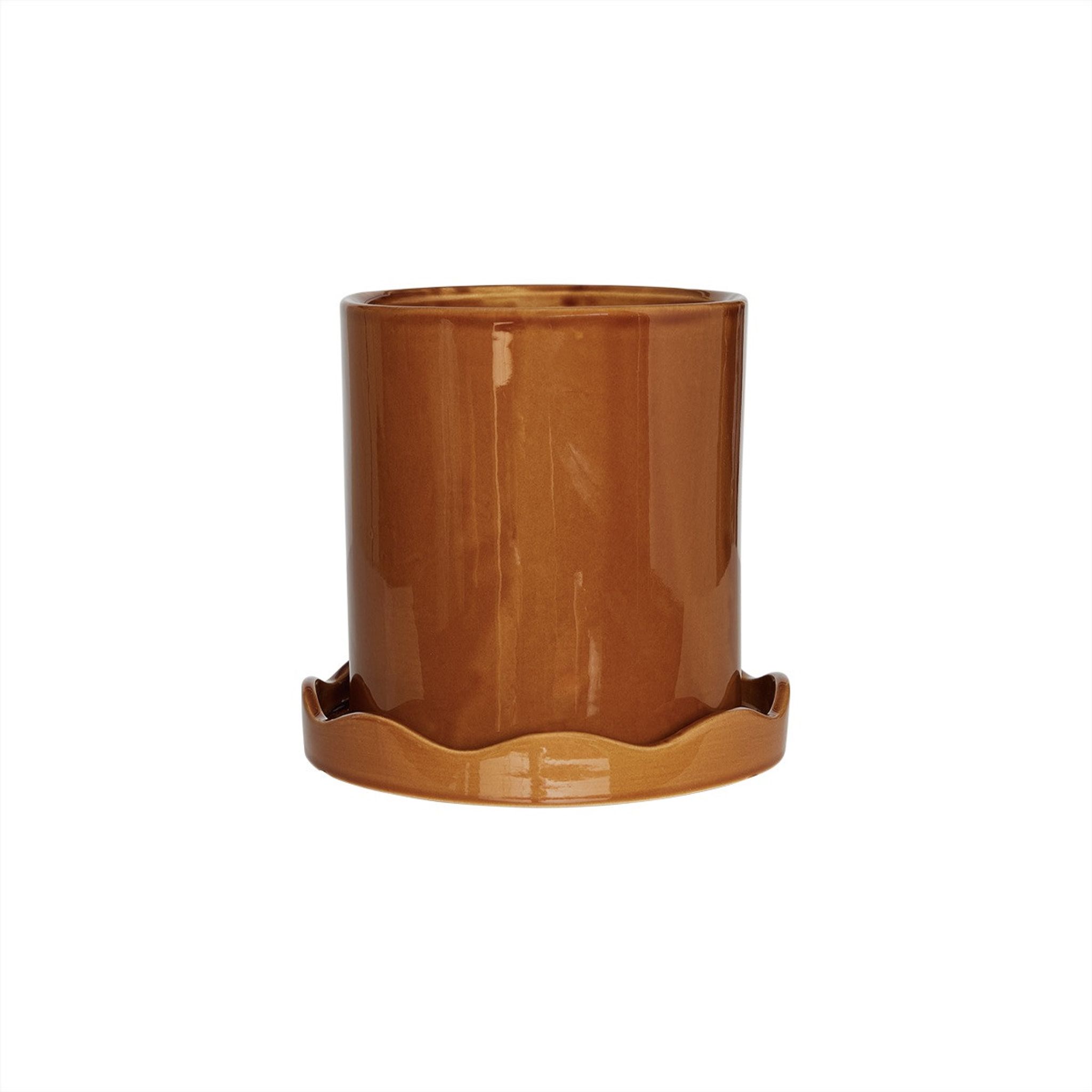 Här är Amber Nami-gryta med fat i stengods från Oyoy Living — en kruka som passar i ditt vardagsrum, på balkongen eller ute på uteplatsen. Den bärnstensfärgade ytan värmer upp din inredning och kompletterar gröna växter utan att ta över.