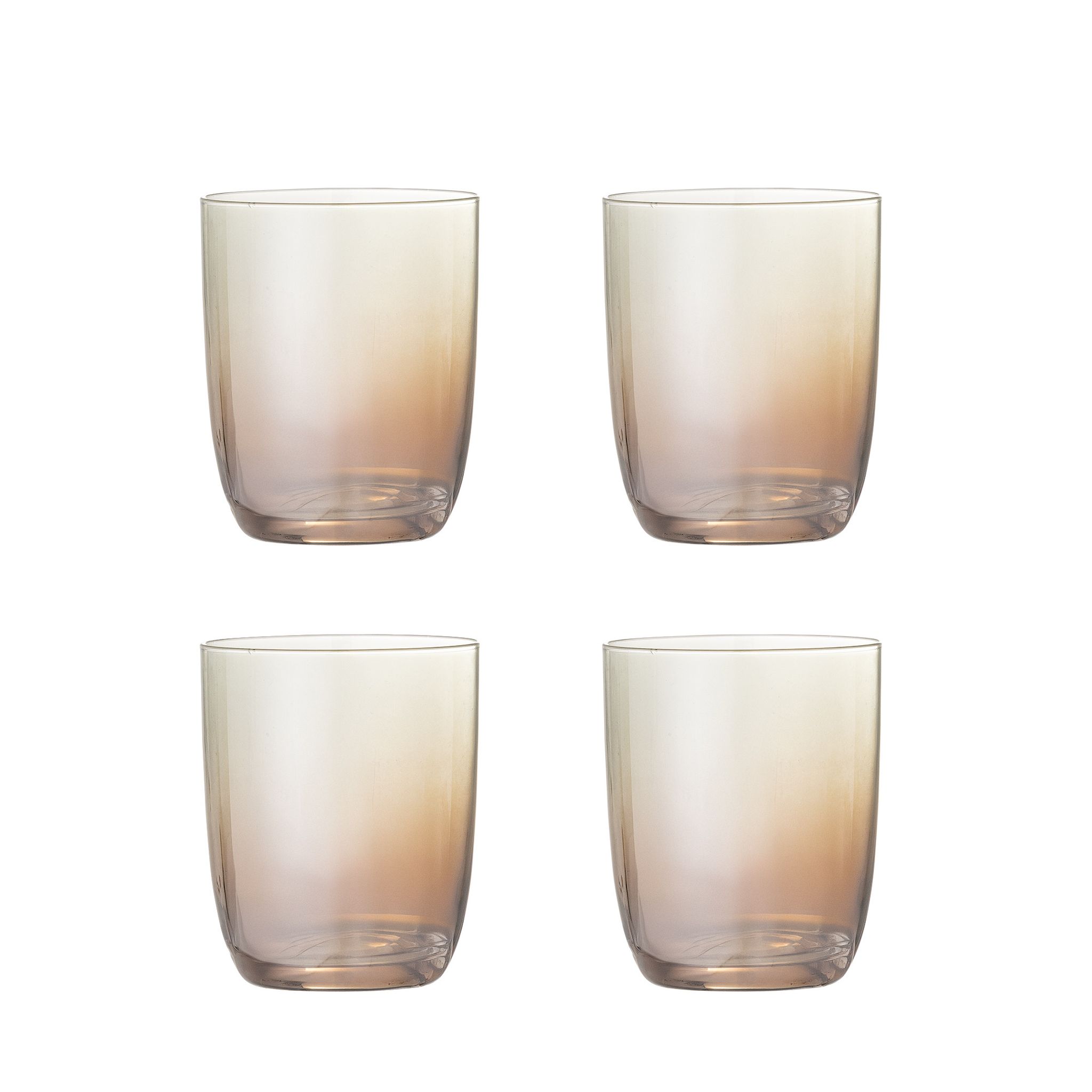 Aston Dricksglas Brons från Bloomingville i bronsfärgat glas. Set om 4 glas med Ø8 cm diameter – en stilren detalj som lyfter bordet vid varje tillfälle.