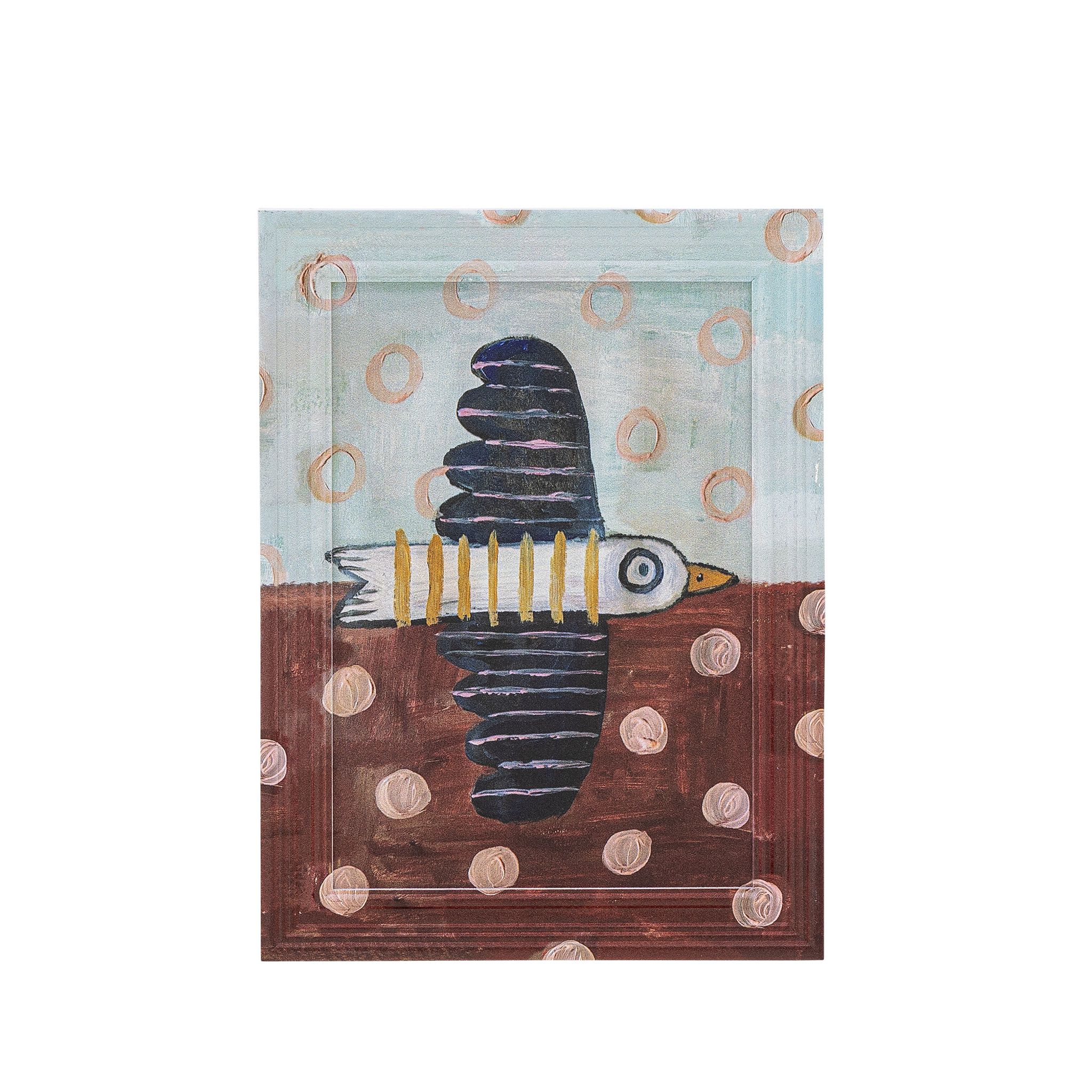 Bloomingville Brett Birdy Illustration Med Ram, Blå, Granträ L22,5xH30xW2 cm