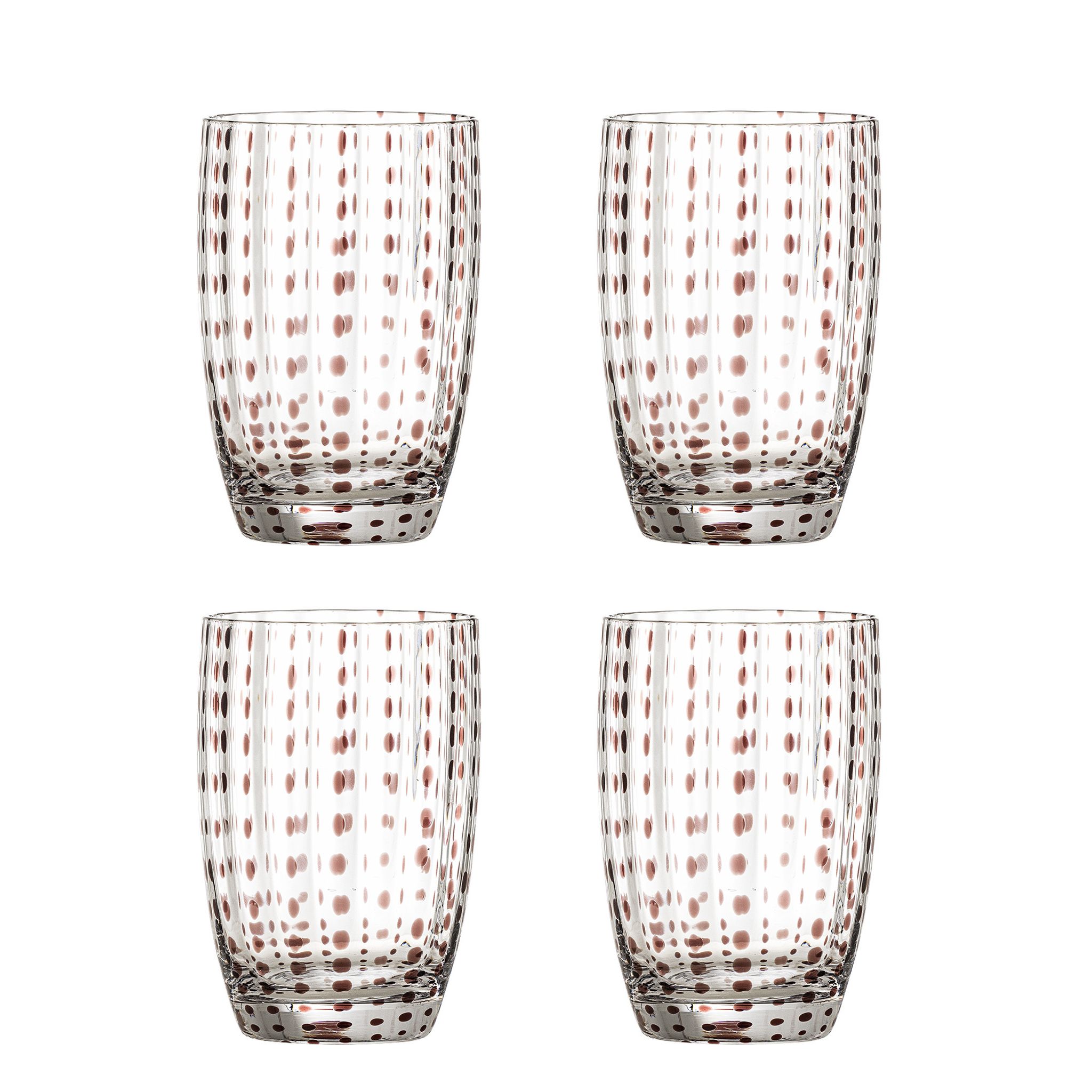 Brinley Dricksglas Brun Glas Ø7.5 cm Set om 4 Bloomingville – stilrena glas med ett brunprickigt mönster som lyfter din dukning.