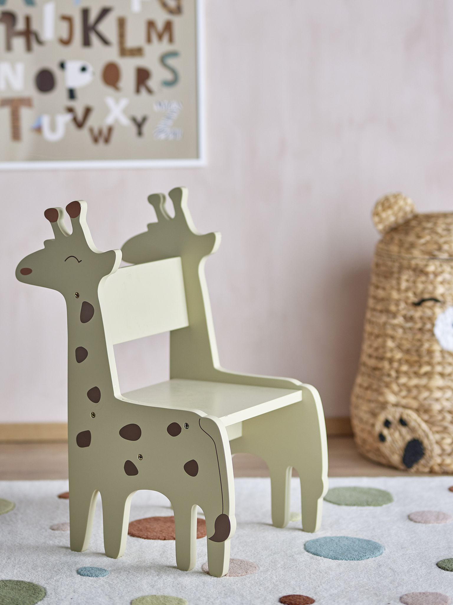 - Design: Giraffform som gör stolen till ett roligt inslag i barnrum eller lekhörna
