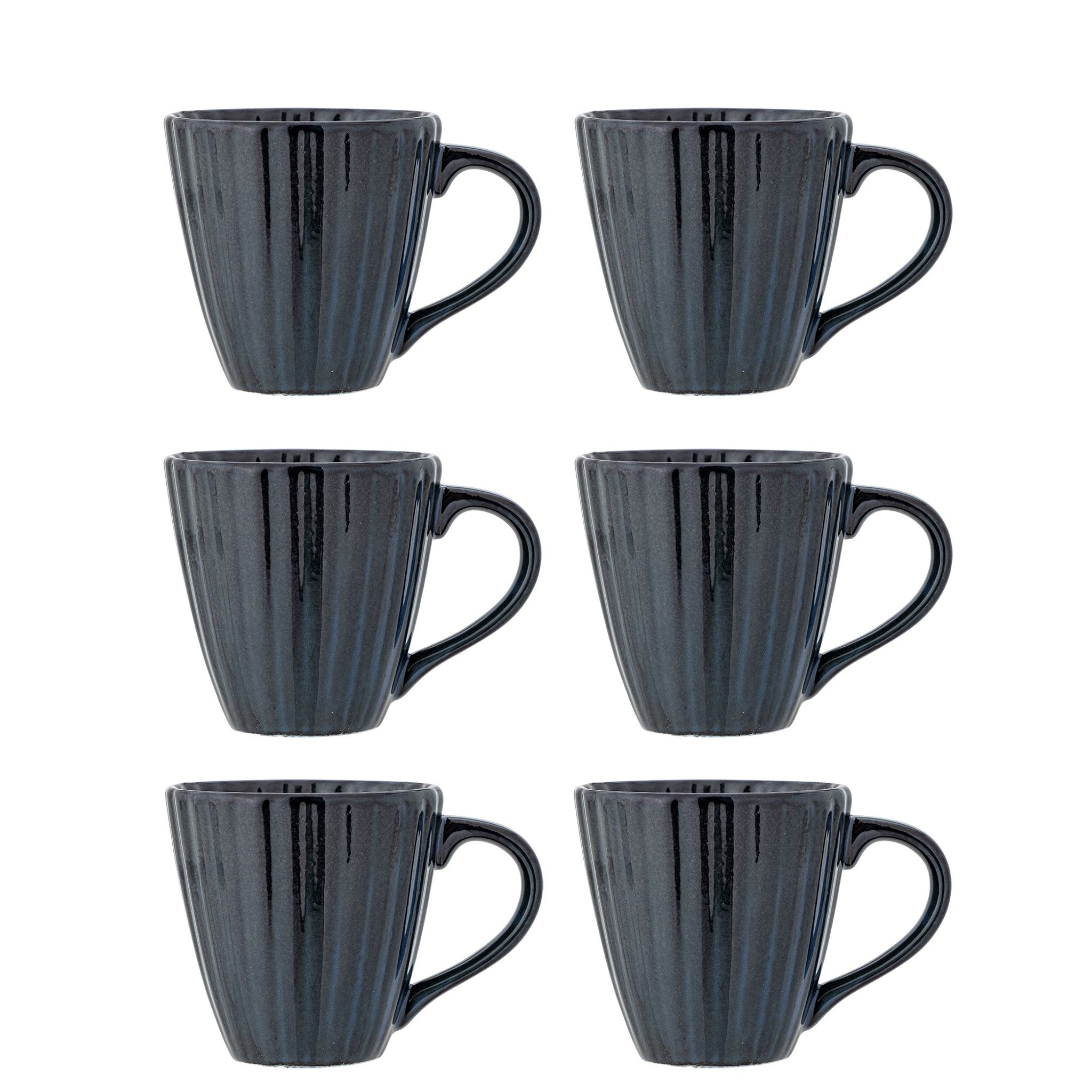 Upptäck Bloomingville Latina Mug, ett elegant set med 6 mörkblå stengodsmuggar, perfekta för både vardag och speciella tillfällen.