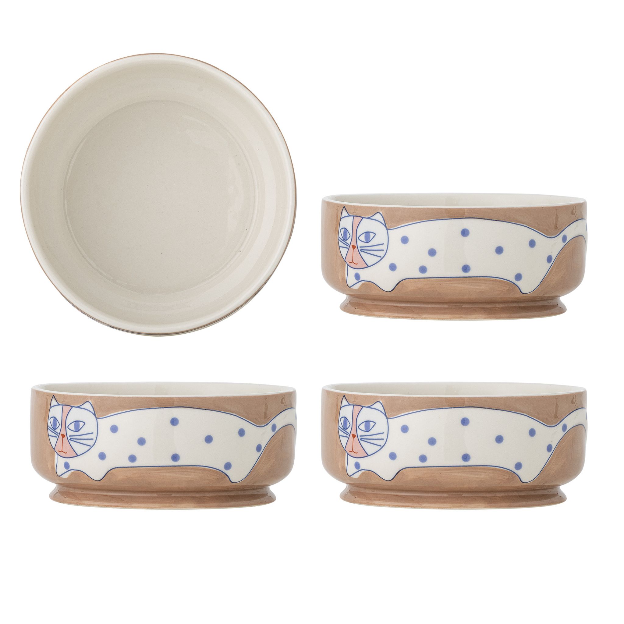 Missy Skål Brun Stengods Ø14.5 cm Set om 4 från Bloomingville. Fyra skålar med kattmotiv som passar perfekt till frukost, desserter och små serveringar.