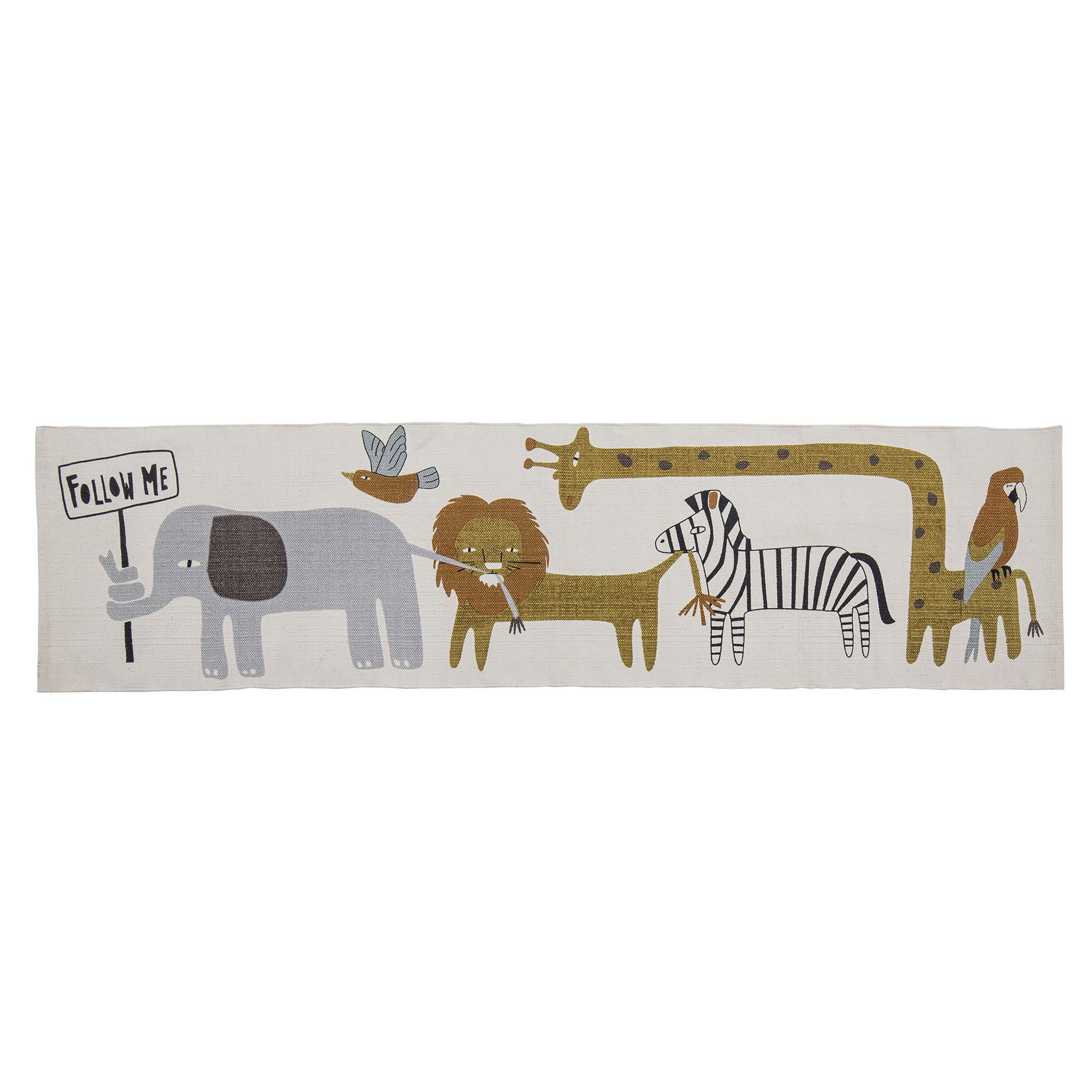 Neah Matta Vit Bomull 299 cm från Bloomingville Mini är en lekfull och mjuk löpare med färgglada djurmönster som sprider glad energi i hemmet.
