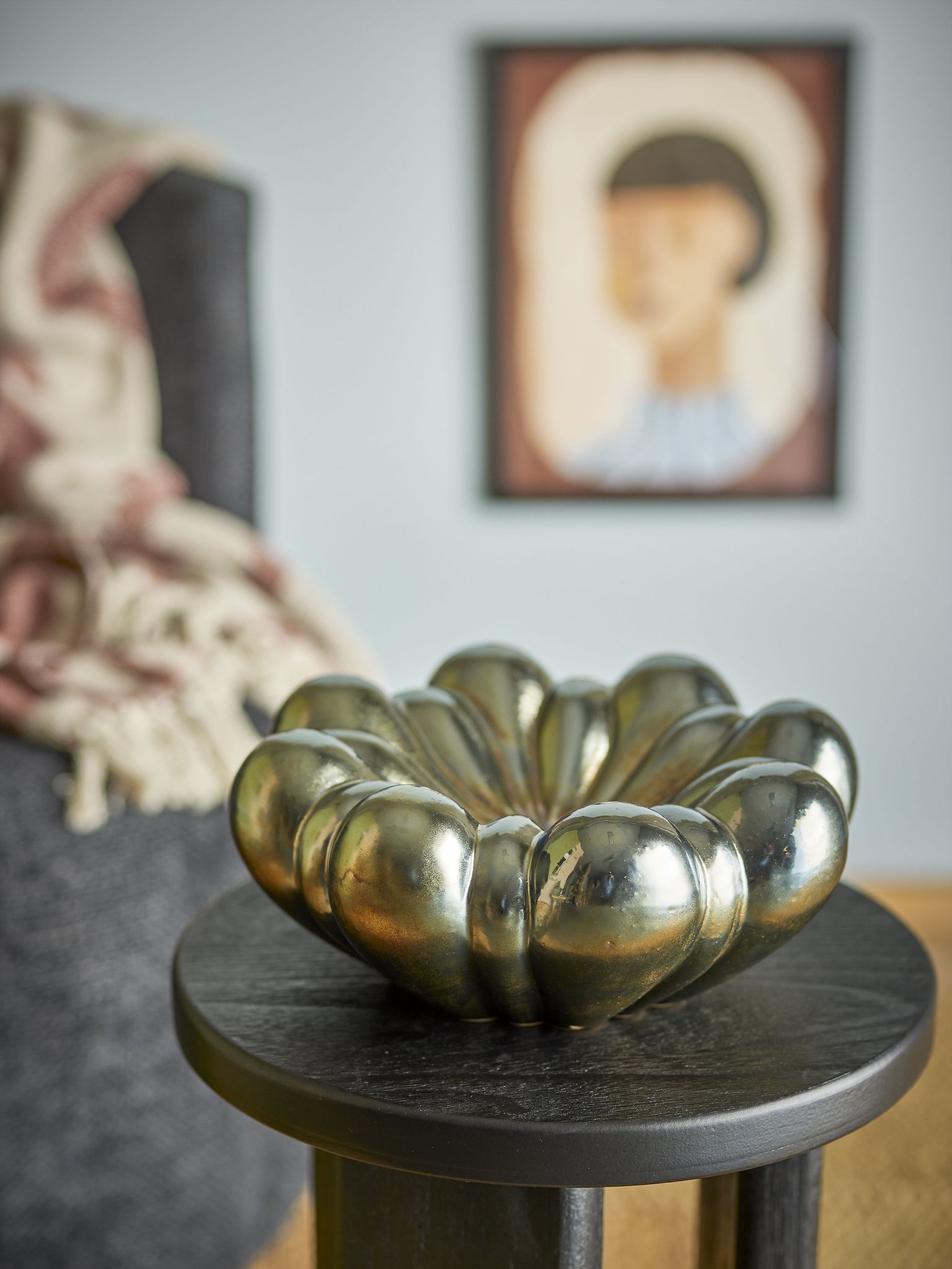 Bloomingville Sheeran Skål i silverglaserat stengods Ø31.5 cm–en blomformad mittpunkt som lyfter bordets stil för vardag och fest, tålig och enkel att kombinera