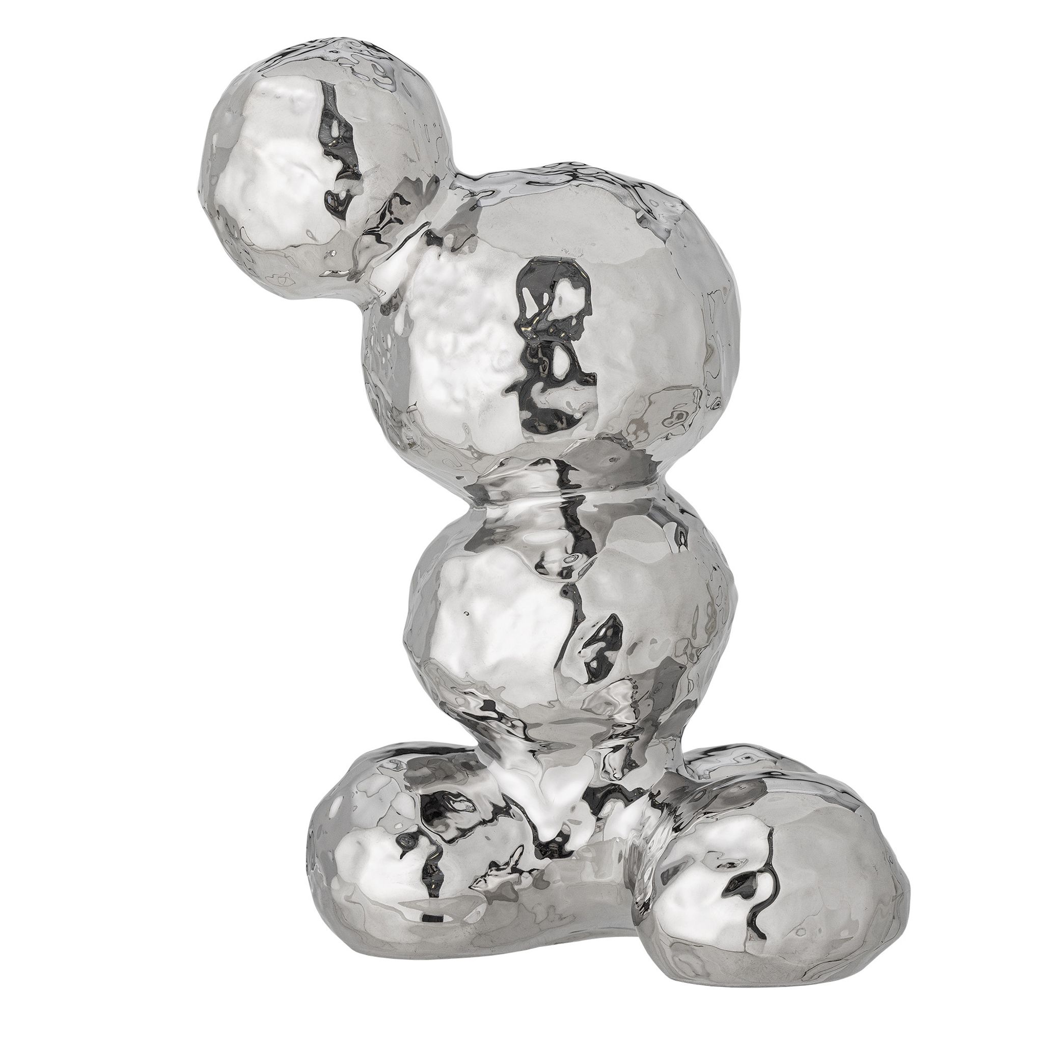 Bobby från Bloomingville är en dekorativ inredningsdetalj i silverfärgad, blank stengods som passar i vardagsrum, hall eller på en bokhylla. Den skulpturala formen fungerar som ett blickfång och ger djup åt din inredning utan att ta för mycket plats.