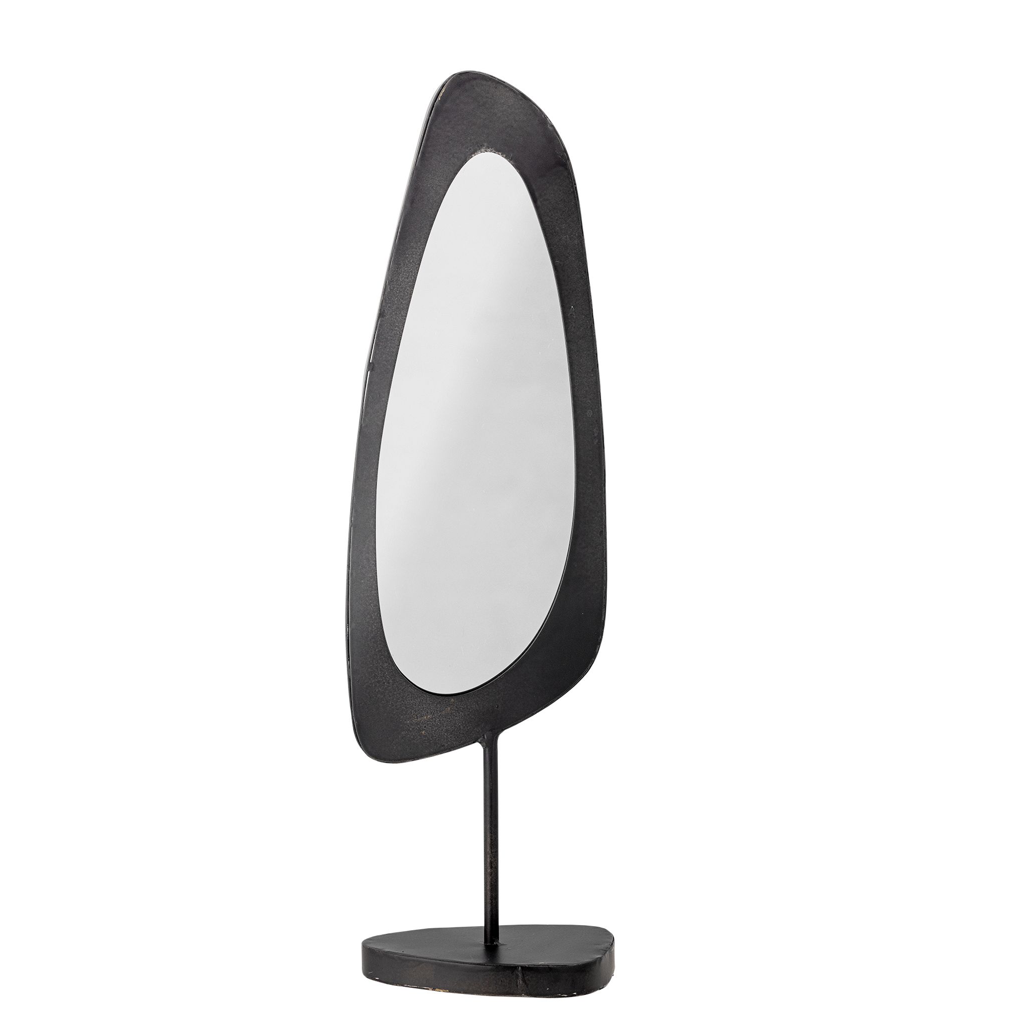 Avoa bordspegel i svart glas från Bloomingville har en oregelbunden form som syns. Det är inte bara en spegel utan också en dekorationsdetalj som ger din inredning mer personlighet och passar bra på ett sidobord i vardagsrummet, på byrån i sovrummet eller i hallen.
