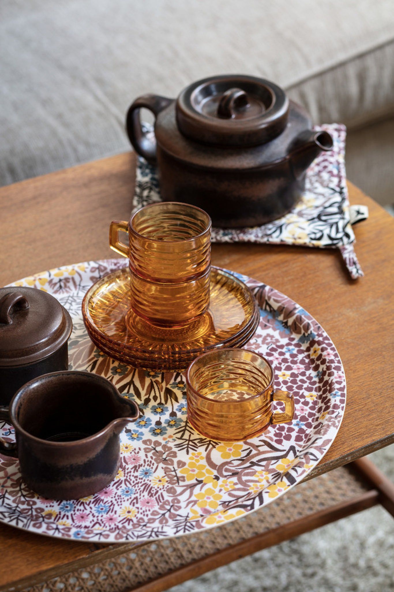 Upptäck Botanic Garden brickan i rosabrun färg, designad av Lilo Hörstadius. Perfekt för att servera dina favoritdrycker eller snacks. Diameter: 38 cm.