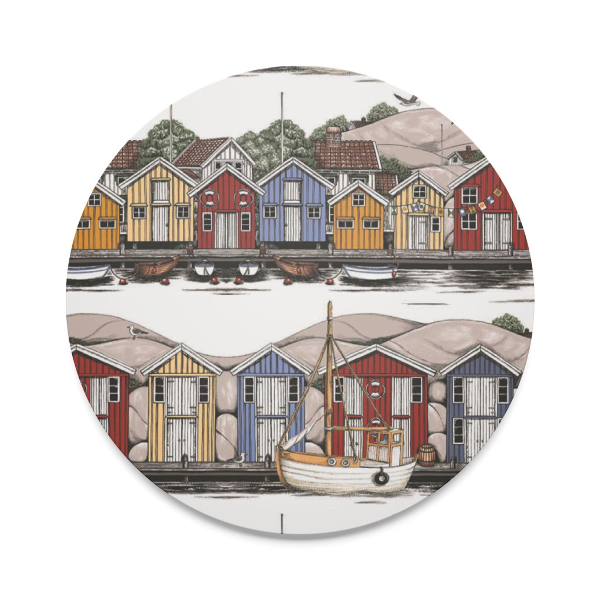 Upplev den perfekta kombinationen av funktion och stil med Bryggviken runt grytunderlägg från Arvidssons Textil. Designad av Mialotta Arvidsson Mars, detta grytunderlägg är inte bara en praktisk köksaccessoar utan också en vacker dekoration för ditt hem.