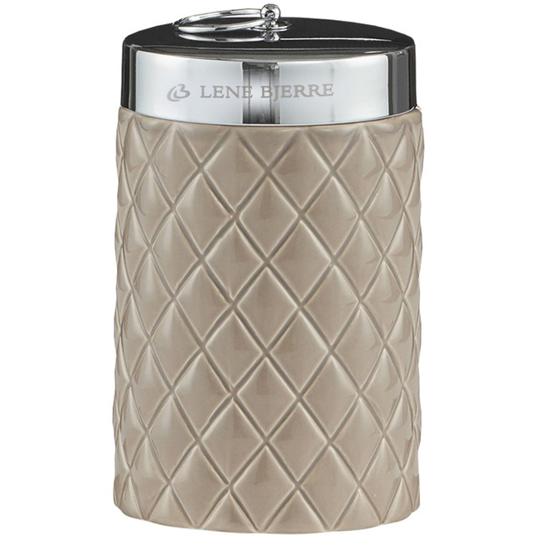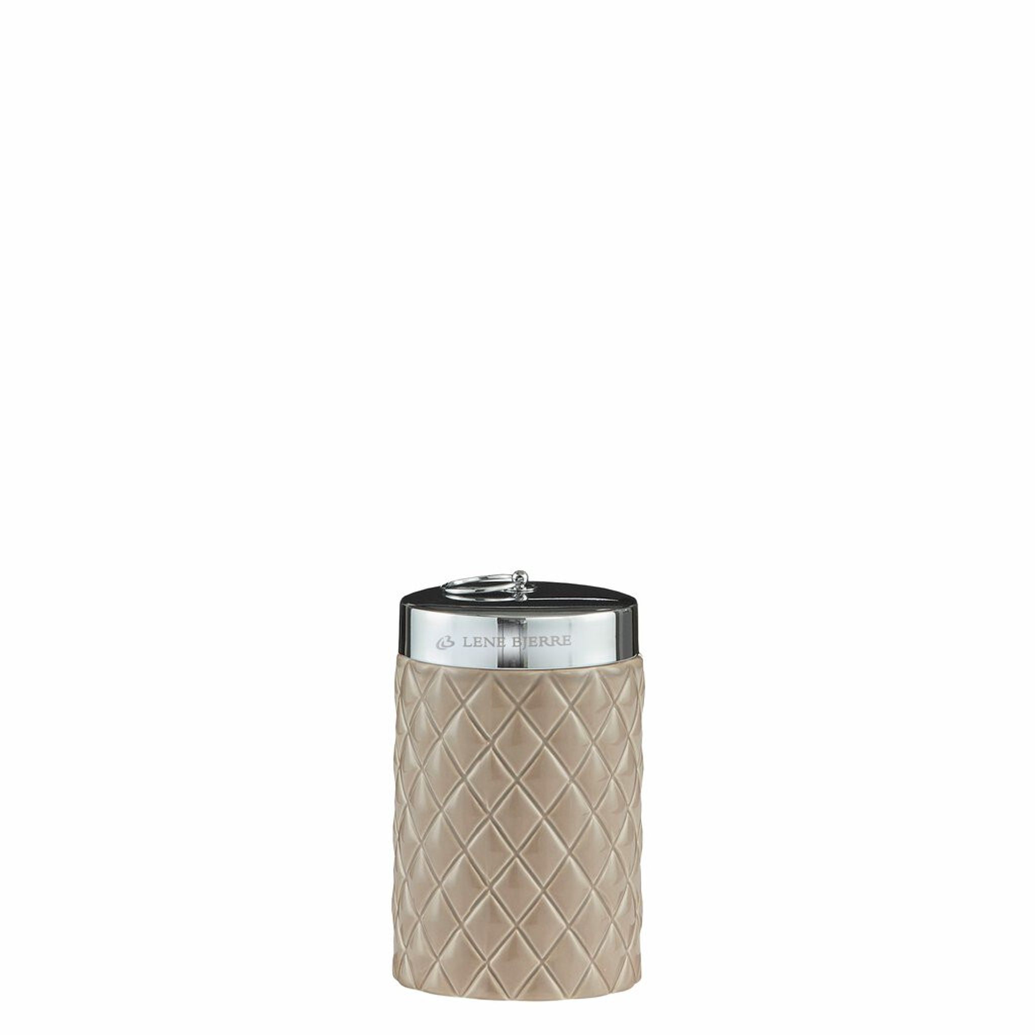 Upptäck Lene Bjerre Portia Förvaringsburk i en elegant design med harlequinmönster. Denna burk är både praktisk och dekorativ, perfekt för att förvara småsaker i badrummet.