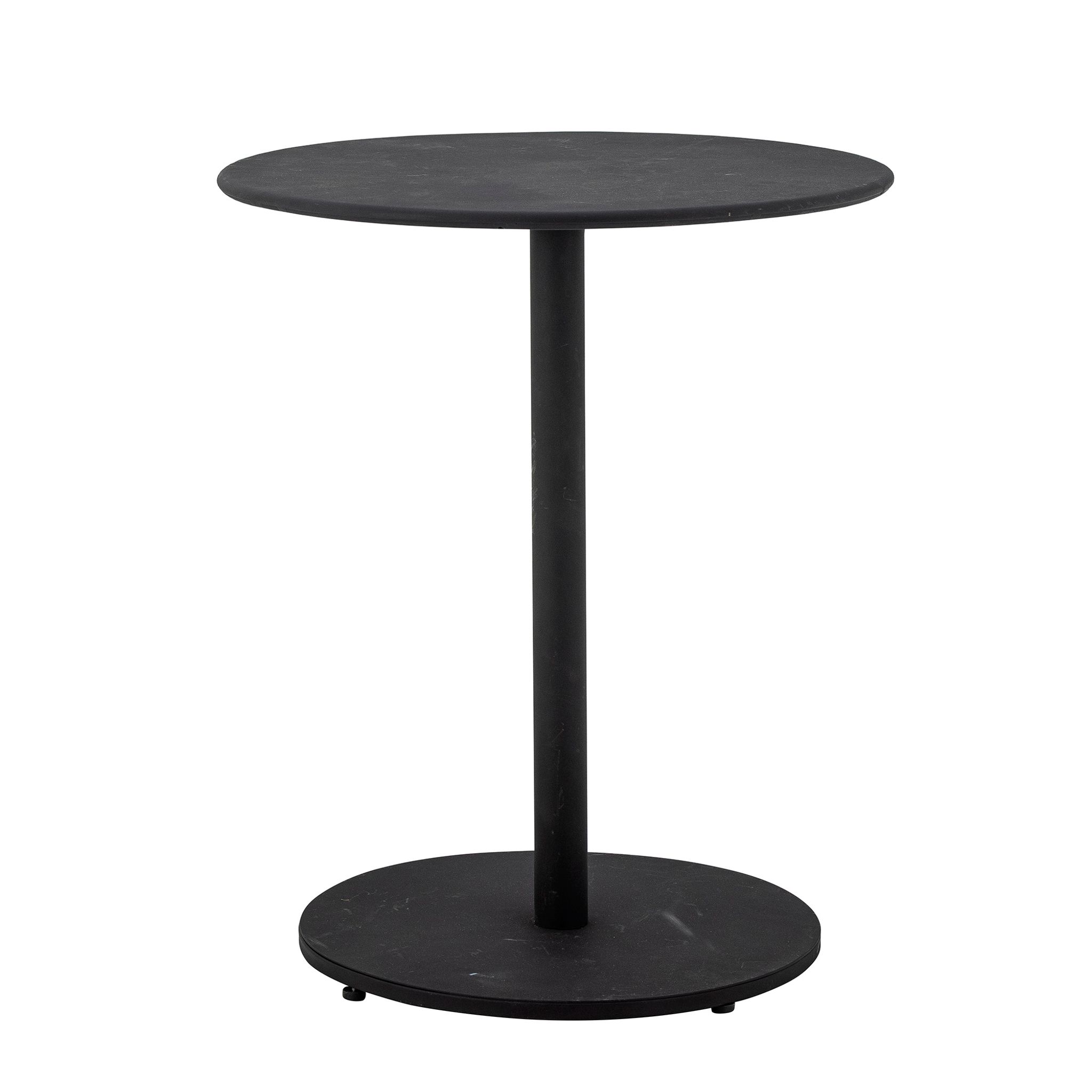 Rafah kafébord i svart metall, 60 cm diameter och 70 cm höjd från Bloomingville. Passar din uteplats eller trädgård, funkar bra som kafébord, håller länge, praktisk och snygg med maxlast 40 kg och KD-packning.