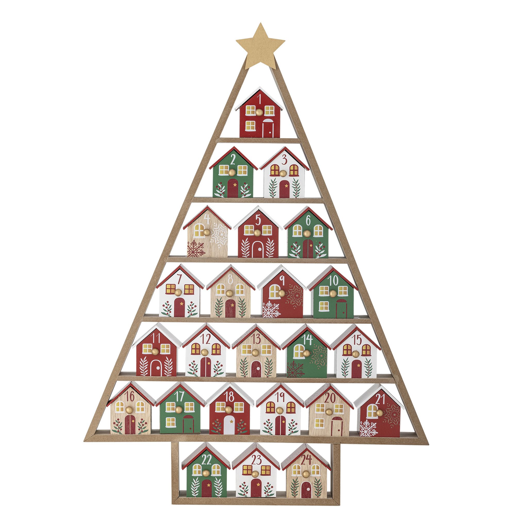 Bloomingville Calvin röd MDF-julkalender är mer än en nedräkning till jul. Med formen av en julgran och färgglada husfack blir den ett dekorativt inslag i ditt julpynt och en naturlig mittpunkt när familj och vänner samlas under advent.