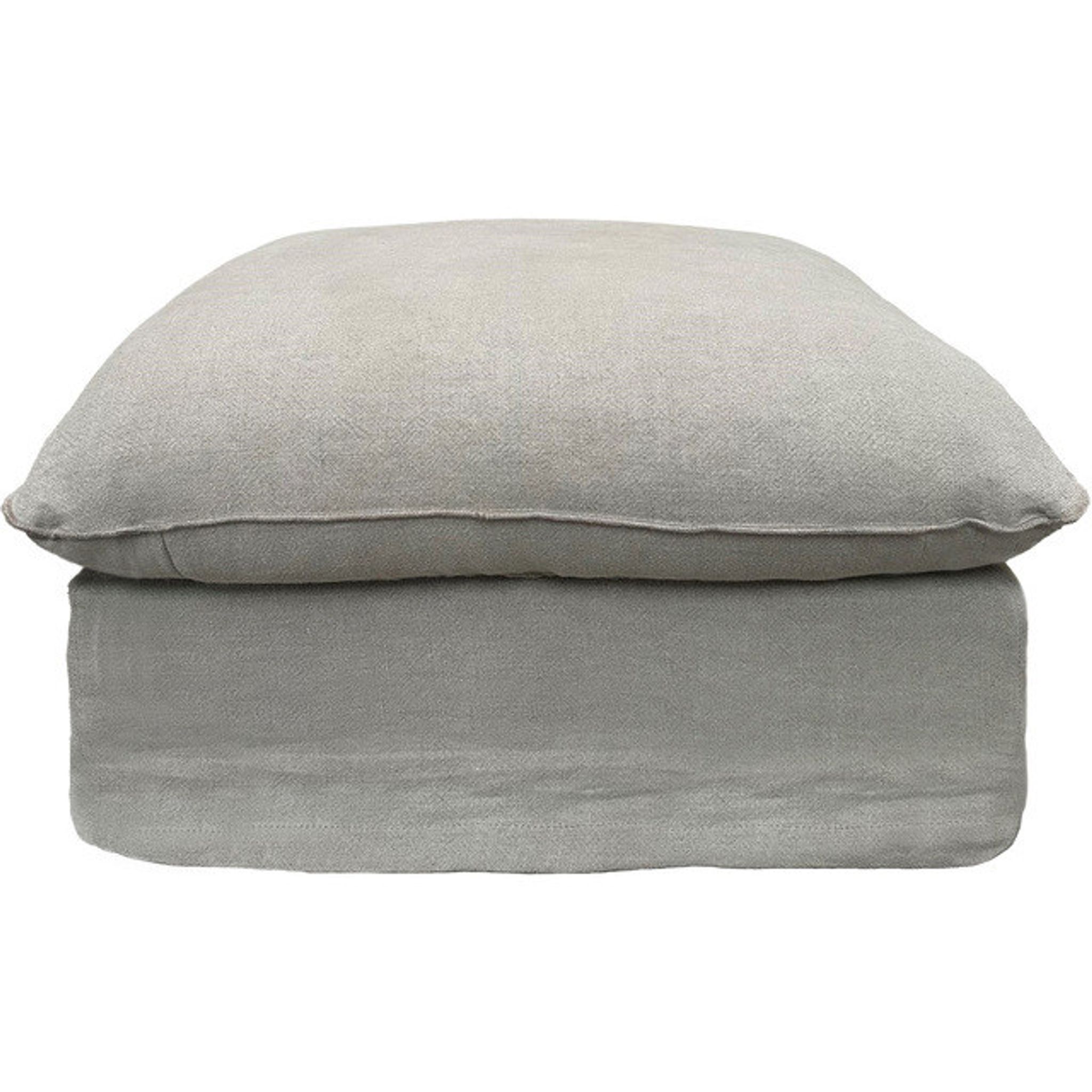 Dara sittpuff i linne med ekram, 920×920×480 cm från Lene Bjerre. Den passar som extra sittplats eller fotpall i ditt vardagsrum, funkar bra och är snygg, praktisk och håller länge.