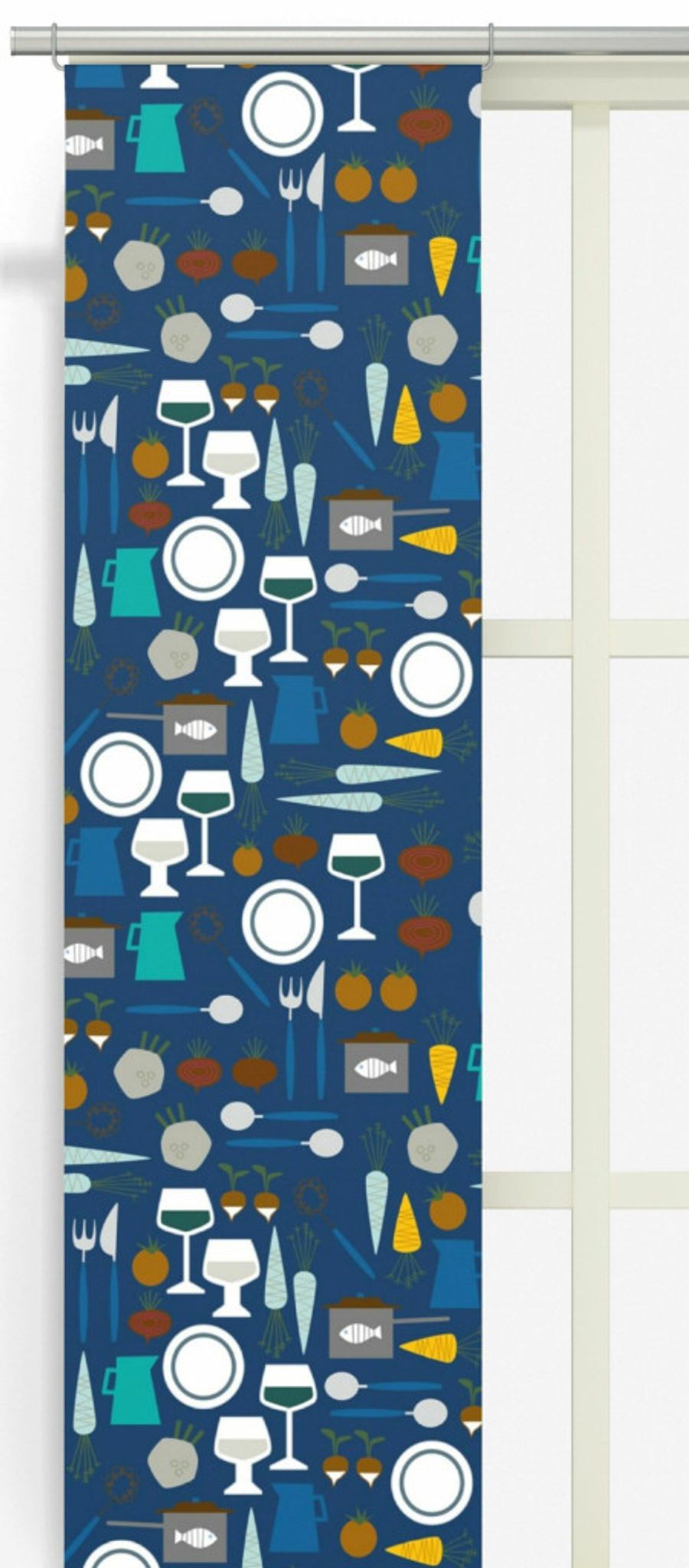 Uppgradera ditt kök med Dinner mörkblå panellängd från Arvidssons Textil. Designad av Nancy Bladfält, erbjuder denna panellängd ett charmigt 50-60-tals inspirerat grafiskt mönster som ger liv och karaktär till din inredning.