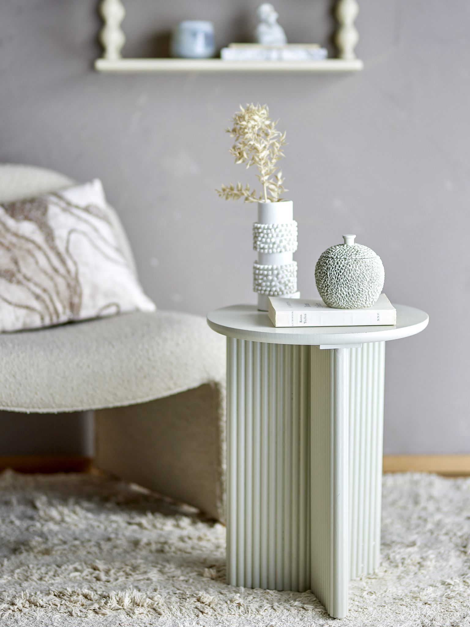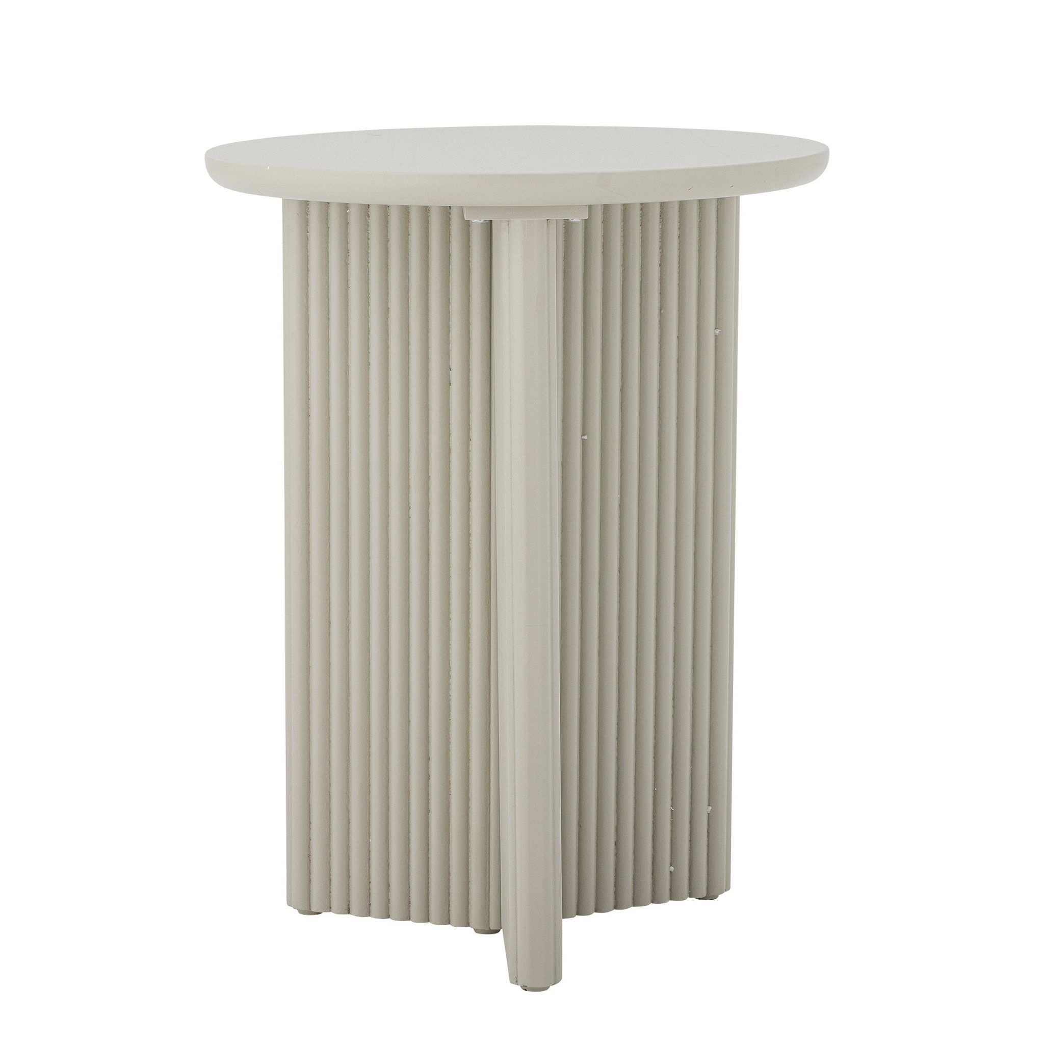 Edith Sidobord Vit av Bloomingville: tidlös design och praktisk funktion. Runt bord med Ø40 cm och slank ribbad bas i vit färg - passar vardagsrum och sovrum.