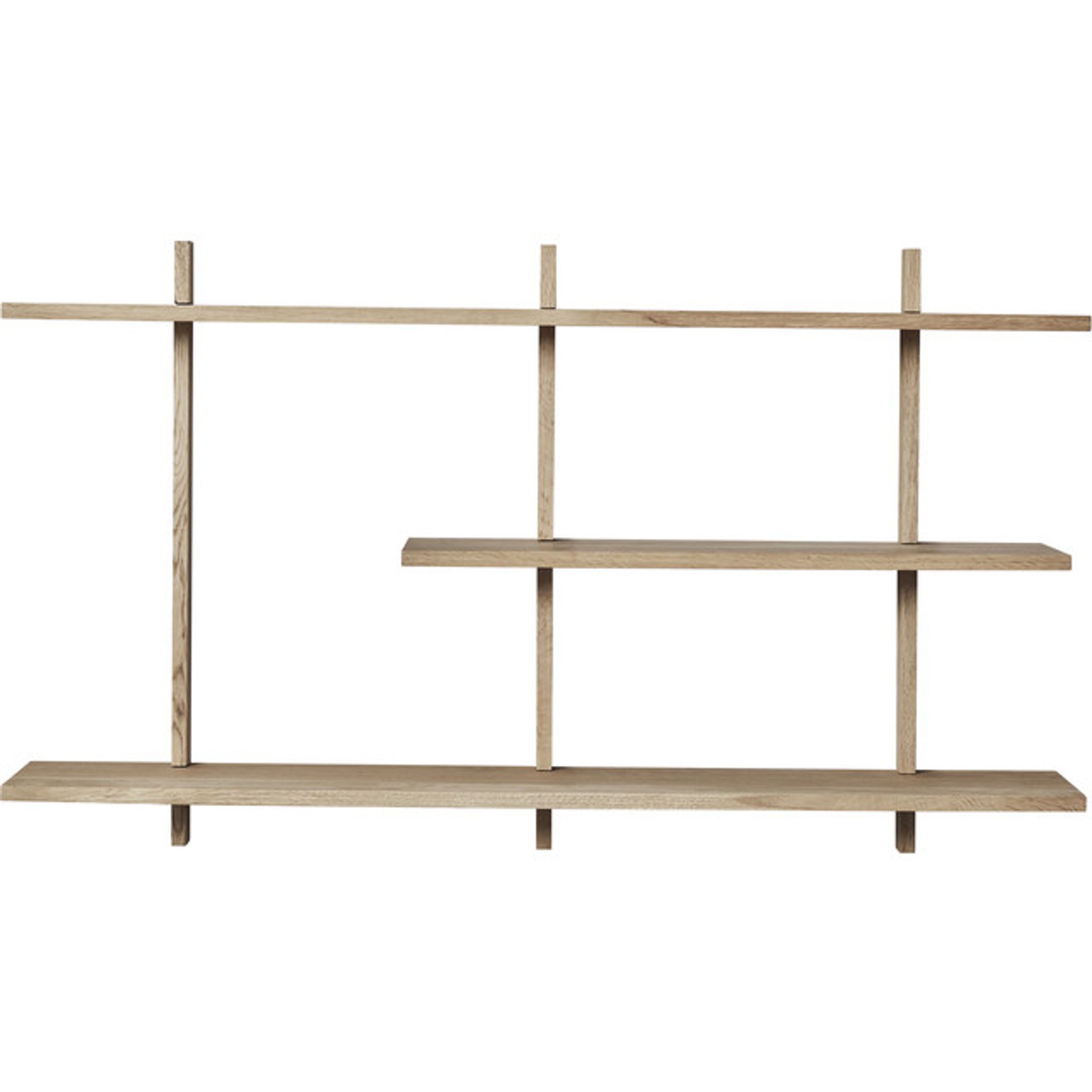 Ellie-hyllan i lackad ek från Lene Bjerre är en välgjord hylla som passar i vardagsrum, sovrum eller hall. Som vägghylla ger den funktionell förvaring och en plats för böcker, växter och konst som du vill ha nära till hands.