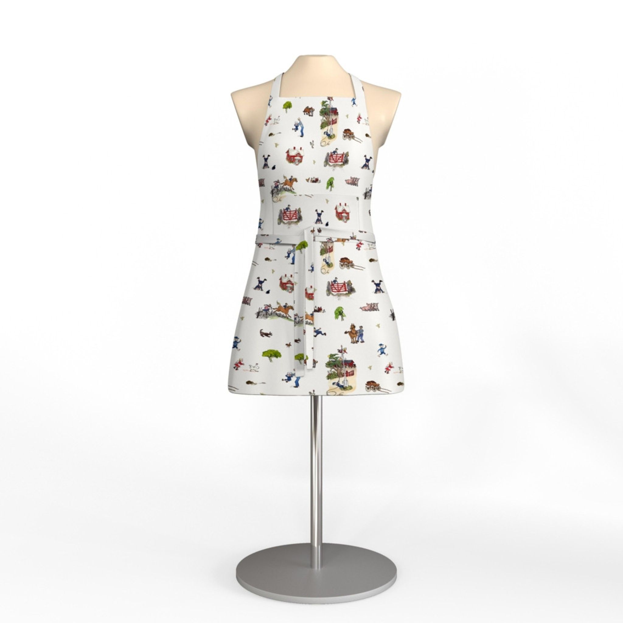 Emil I Katthult offwhite förkläde med ficka från Arvidssons Textil är ett mjukt och slitstarkt köksförkläde i 100% bomull. Den ljusa offwhite bakgrunden bär ett lekfullt motiv inspirerat av Emil i Katthult och passar både i köket och vid matlagning och bakning.