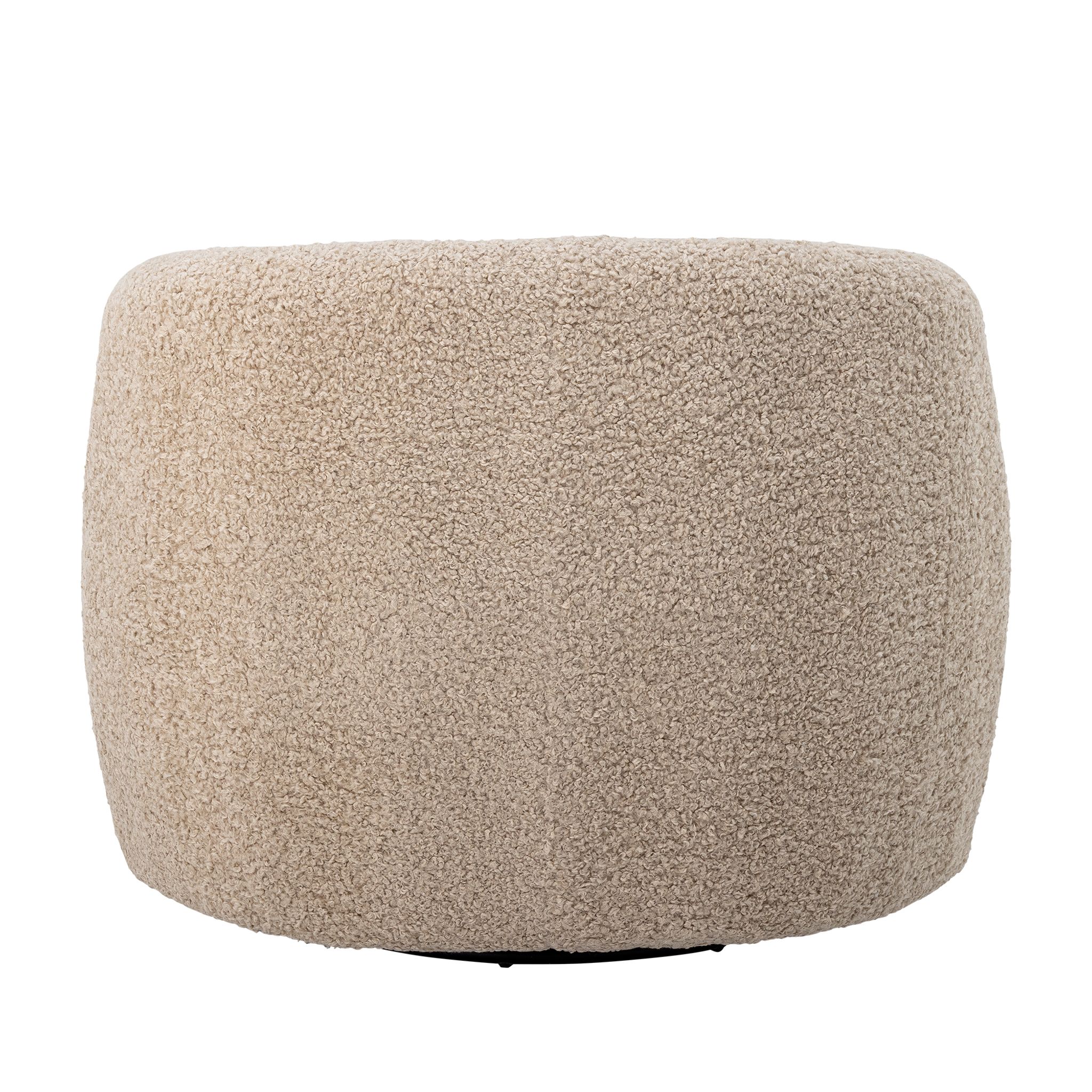 Bloomingville Bocca loungefåtölj är en snurrfåtölj med rund, organisk form som passar i vardagsrum, läshörna eller som en bekväm sits i din sitthörna. Den mjuka, texturerade polyesterklädseln ger inbjudande sittkomfort och fungerar bra tillsammans med flera olika inredningsstilar.