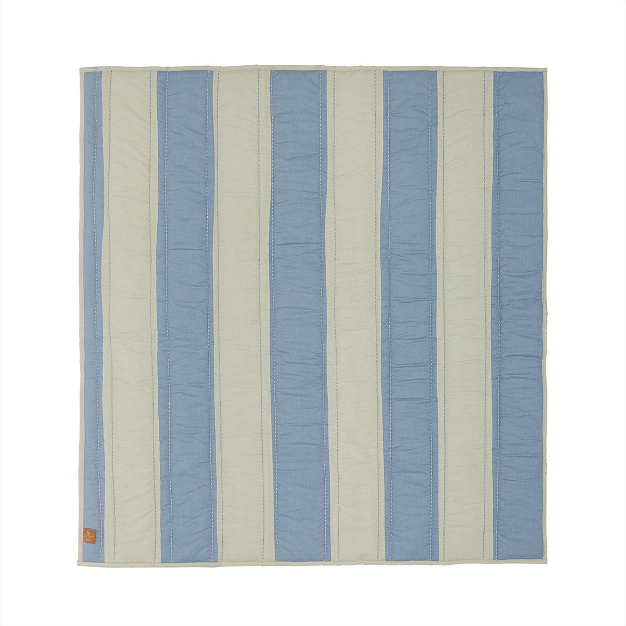 Randig vadderad filt 130x140 cm i bomull från Oyoy Mini, blå/lera. Passar ditt barn från 0+ och funkar i barnrummet; håller länge, snygg, praktisk och bra, tvättas i 30°C skonsamt.