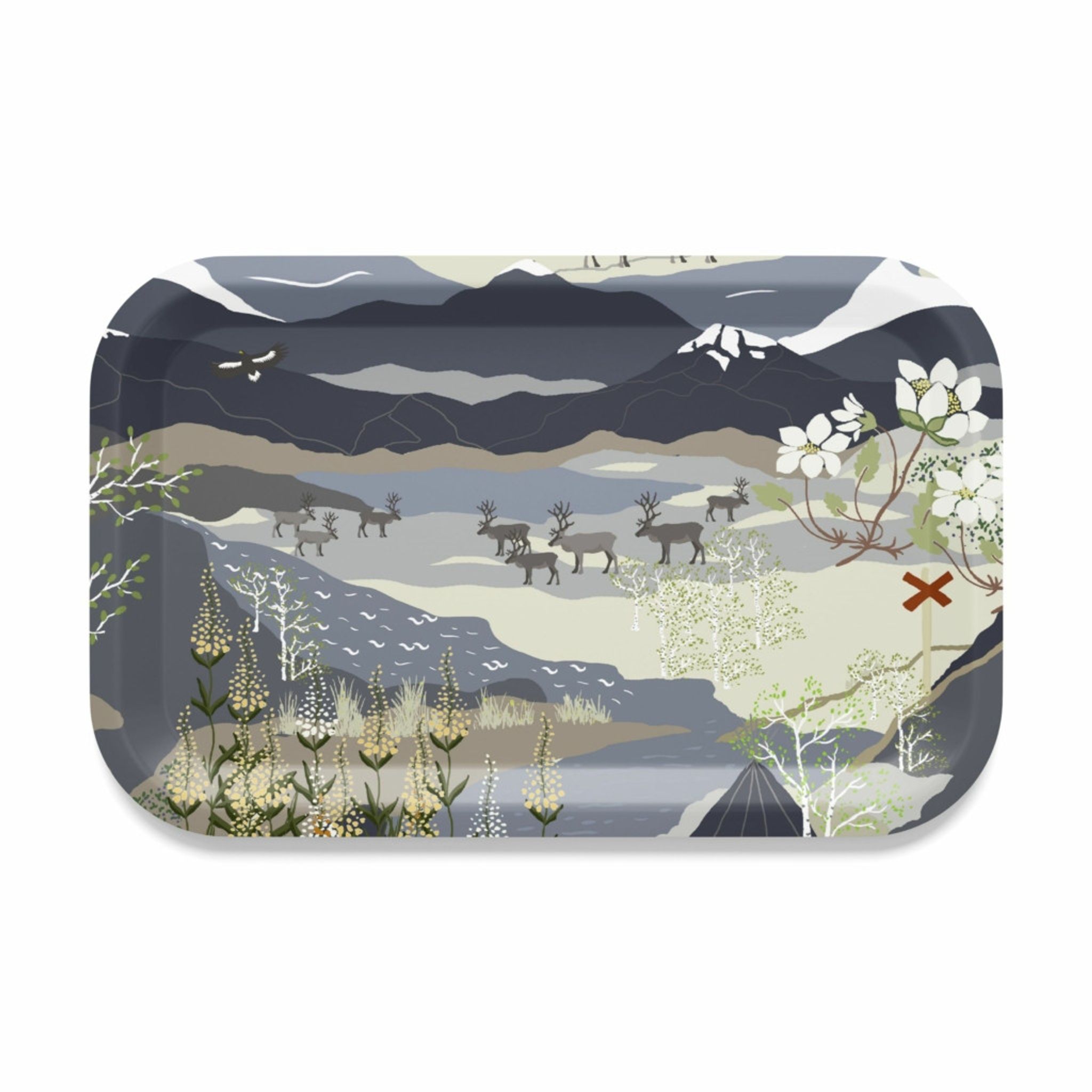 Upptäck den magiska skönheten i naturen med vår Fjällvandring blå bricka från Arvidssons Textil. Denna unika bricka är prydd med ett vackert mönster som fångar essensen av fjällvandring, med renar som strövar fritt och porlande bäckar som skapar en harmonisk atmosfär.
