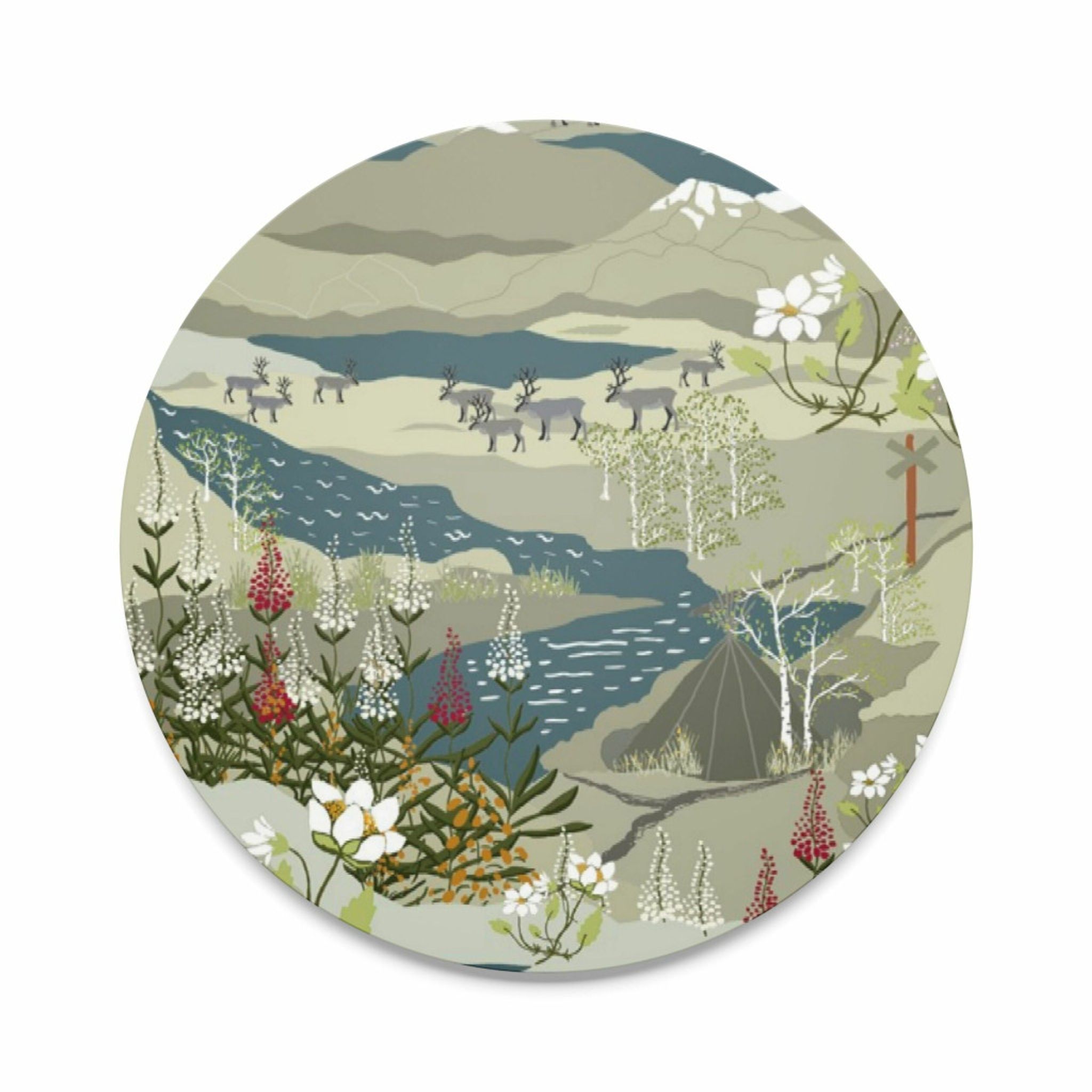 Upplev den magiska stämningen av fjällvandring med vårt grytunderlägg "Fjällvandring turkos" från Arvidssons Textil. Detta vackra grytunderlägg är designat med en konstnärlig tolkning av fjällens skönhet, där renar strövar fritt och porlande bäckar skapar en harmonisk atmosfär.