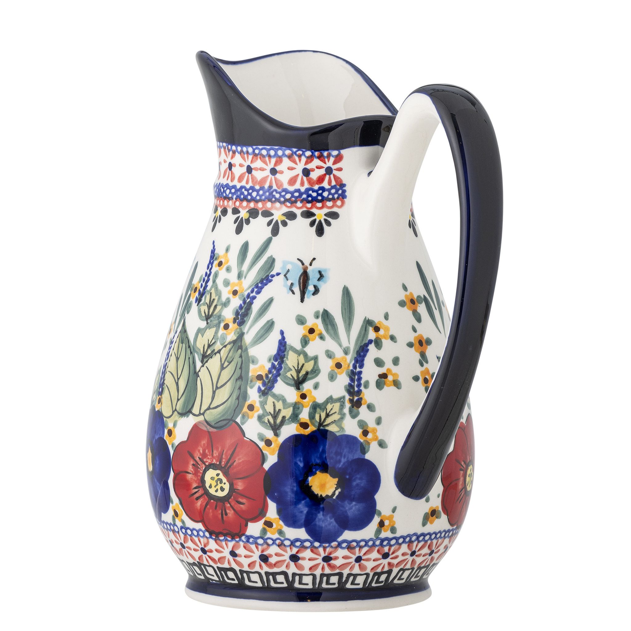 Kannan kombinerar hantverk och funktion — de handmålade detaljerna gör varje exemplar unikt och bidrar med färg till din dukning. Den rejäla volymen gör servering smidigare när du har gäster eller vill fylla flera glas åt gången.