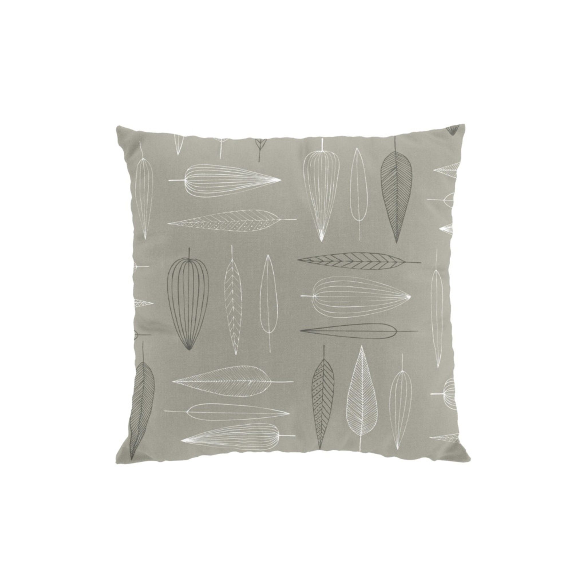 Frostblad beige kuddfodral från Arvidssons Textil, designat av Ulla Gustavsson. Ett mjukt, naturnära tillskott som förhöjer soffan eller sängen med minimalistisk elegans.