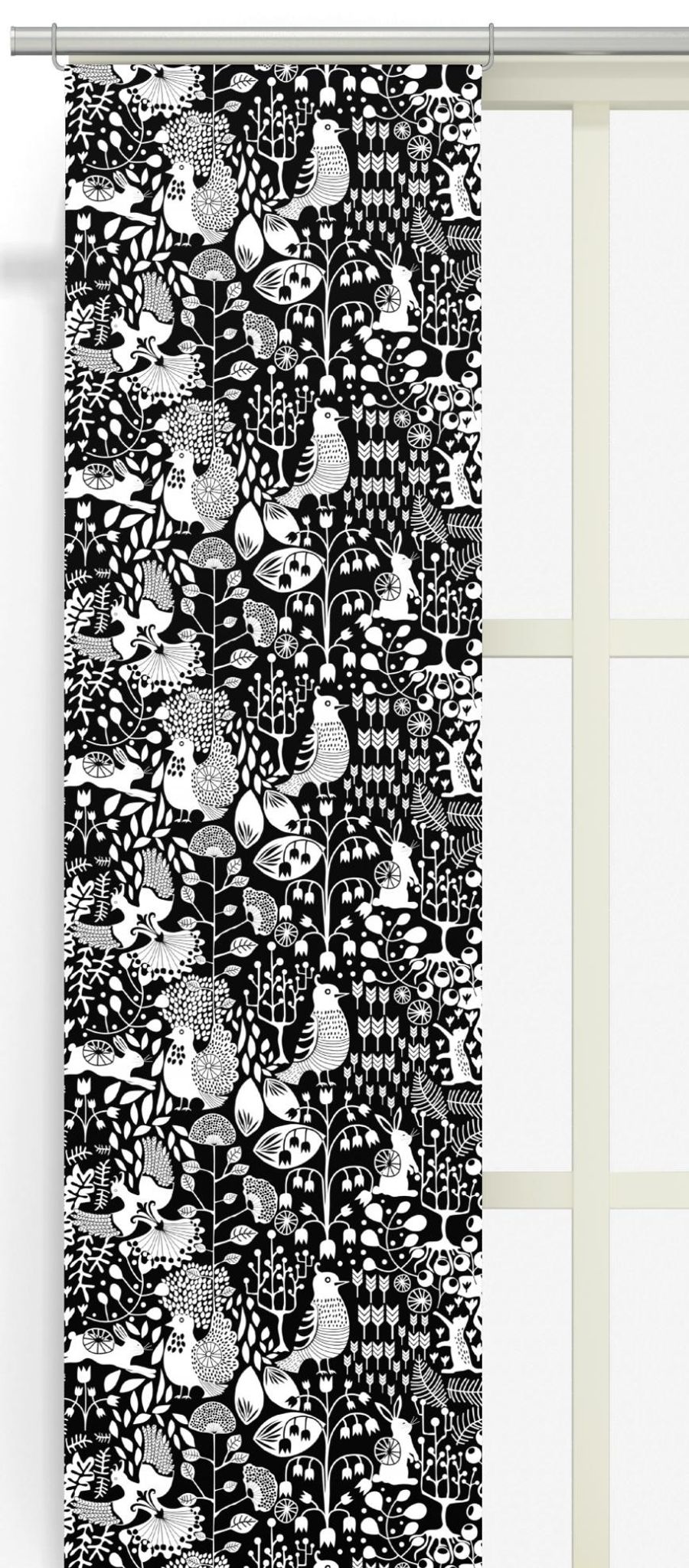 Fyri svart panellängd 2-pack från Arvidssons Textil är ett stilrent tillskott till fönstret. Den svarta botaniska designen ger ett elegant uttryck som passar både moderna och tidlösa inredningar, samtidigt som den erbjuder privatliv utan att blockera dagsljuset.