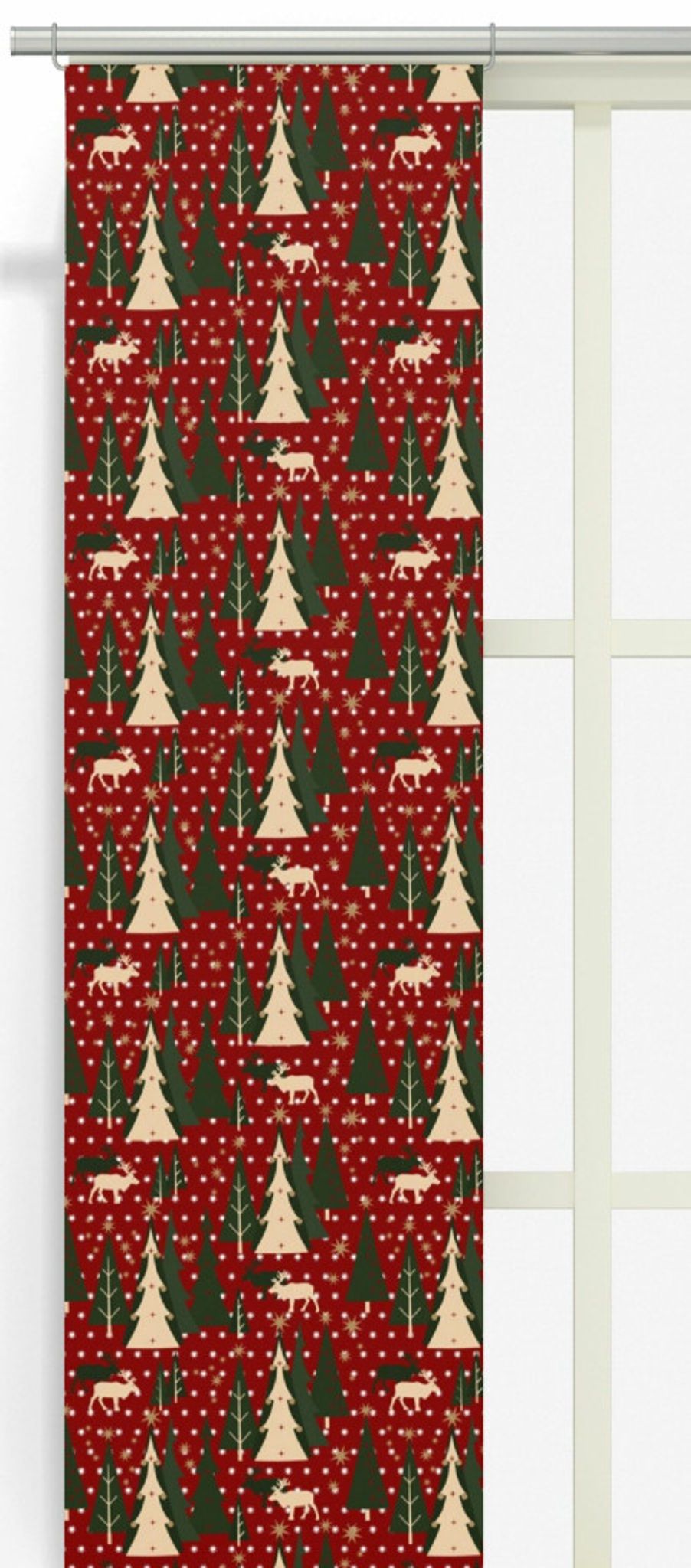 - Material: Högkvalitativt tyg med en vacker röd bakgrund och mönster av granar och djur.