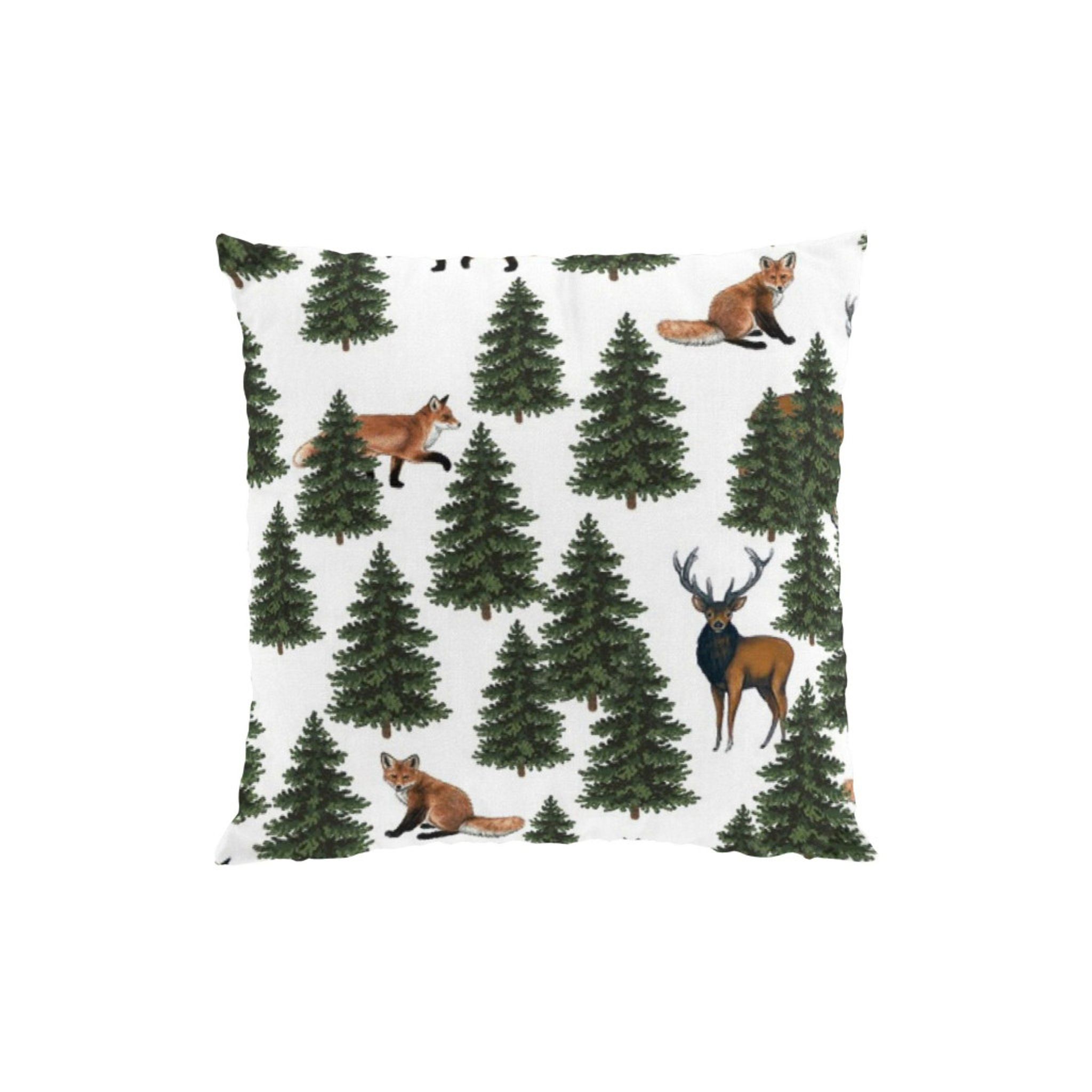 Granskog grön kuddfodral från Arvidssons Textil i bomull ger en naturnära känsla till soffan eller sängen. Det gröna skogslandskapet med granar och skogsdjur skapar ett lekfullt och stilrent uttryck som passar i olika inredningsstilar.