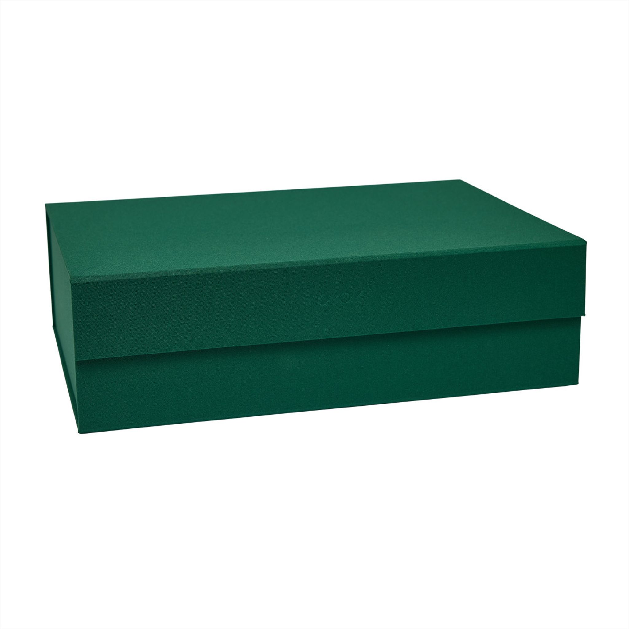 Den mörkgröna pappförvaringslådan från Oyoy Living är en enkel och välgjord förvaringslösning för barnrum och andra ytor i hemmet. Du kan använda den som förvaringslåda för leksaker, pyssel eller böcker — en smidig lösning för bättre ordning och leksaksförvaring i ditt barns rum.