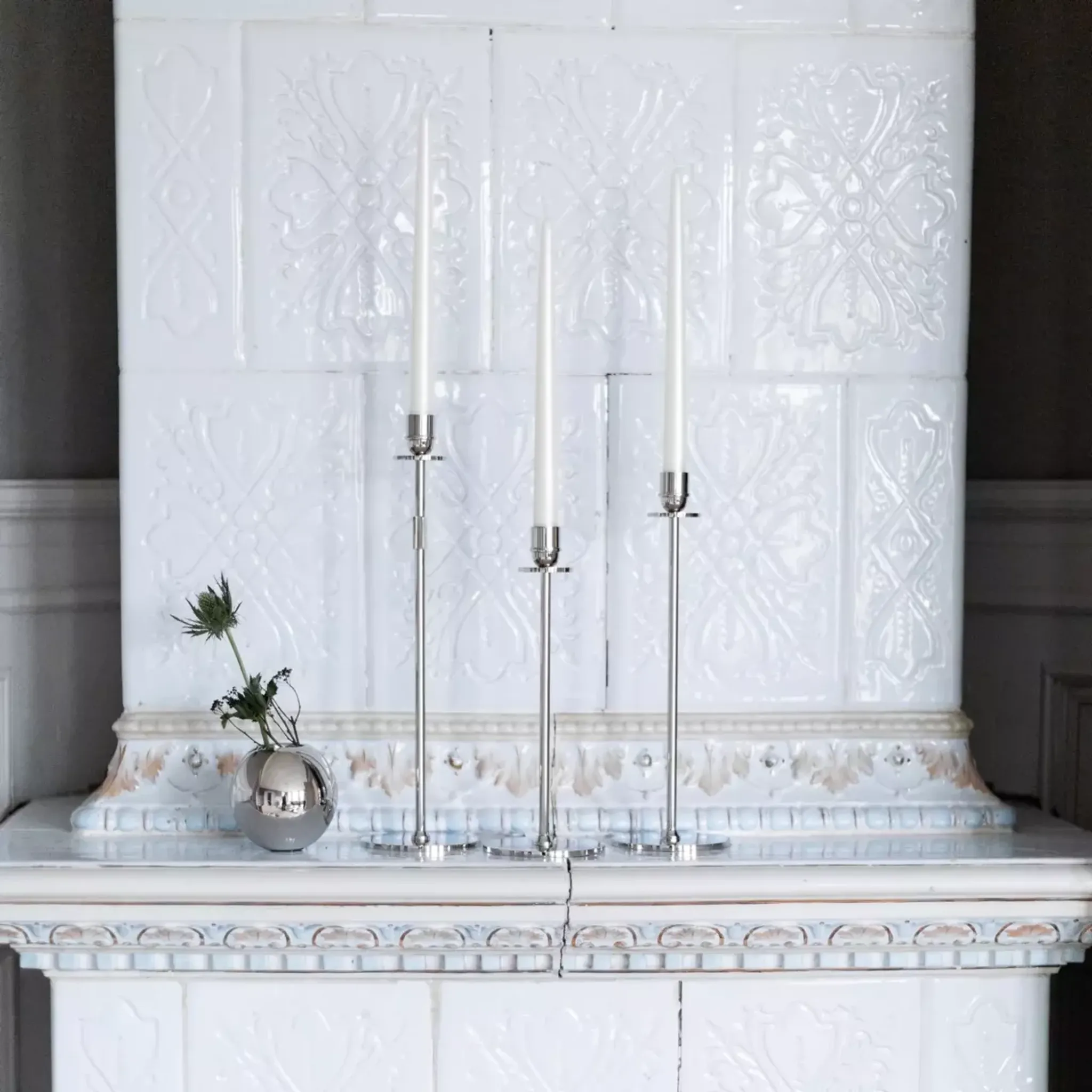 Upptäck Hilke Collection Ljusstake, Chiaro di luna - 30cm, en handgjord ljusstake i förnicklad mässing som förvandlar ditt hem med tidlös design.