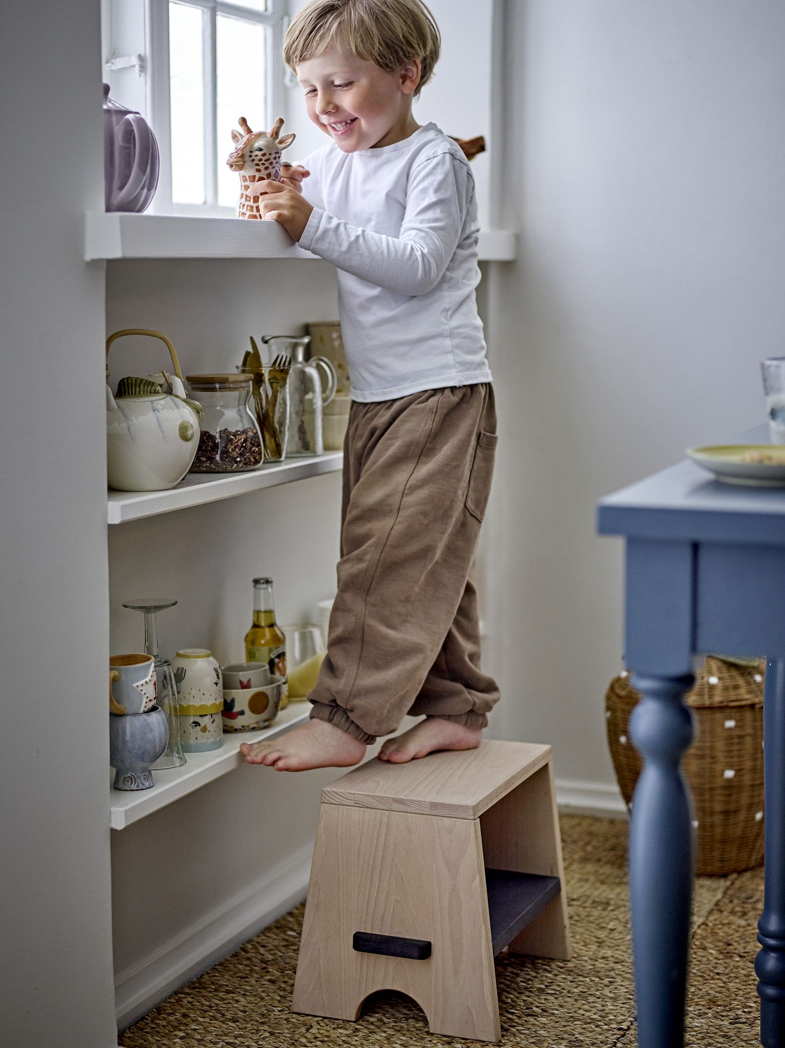 Jela Pall Natur Bok 429 cm från Bloomingville Mini är en stilren pall i bokträ med naturlig överdel och svart nedre hylla. Den enkla, nordiska designen gör den användbar som extra sittplats, sidobord eller liten förvaringsyta i hallen eller vardagsrummet.