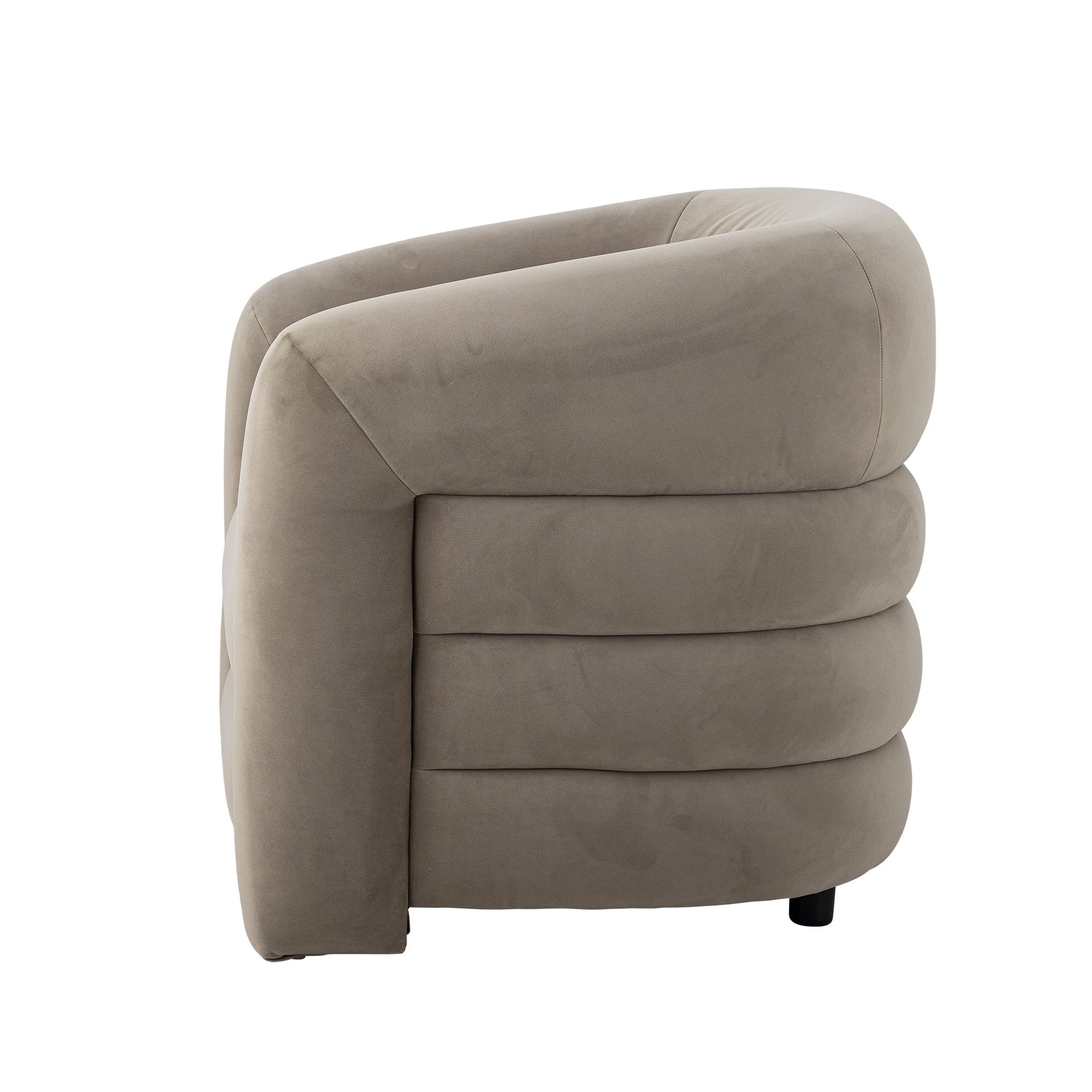 Joel Loungefåtölj Grå från Bloomingville är en stilren loungestol med mjuk sittyta och skulptural form, perfekt för vardagsrummet eller avkoppling.