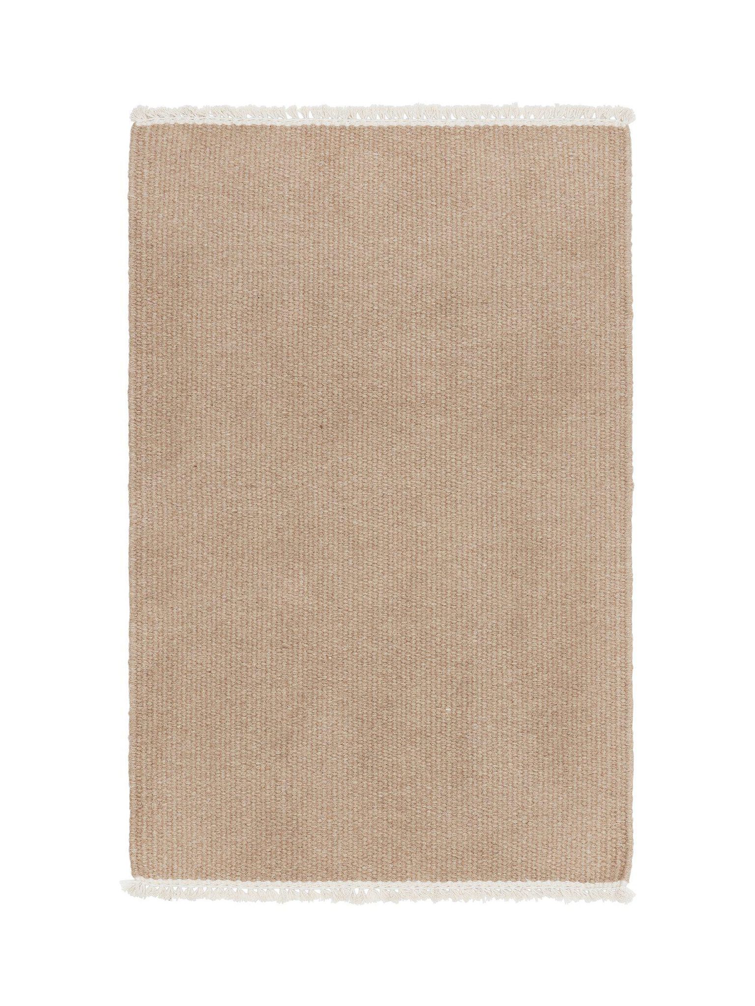 Upptäck den eleganta och mångsidiga John ullmattan, perfekt för att förhöja ditt hem. Denna tunna, slätvävda matta är vändbar och tillverkad av 100% naturlig ull med en hållbar bomullsvarp. Med sin korta frans på båda kortsidorna ger den en stilren och modern känsla.