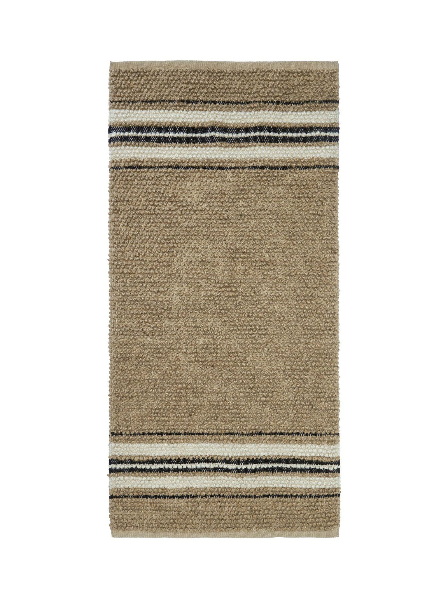 Ge ditt hem en stilren touch med denna dekorativa matta i kraftigt jute. Med sina eleganta vita och svarta ränder på kortsidorna passar den perfekt både inomhus och utomhus, i växthus eller uterum. Tänk på att den får en vacker patina om den används utomhus. Mattan mäter 70x140 cm och är lätt att rengöra – torka bara bort fläckar med en fuktig trasa eller överlämna den till en professionell mattvätt för en grundlig rengöring. Ge ditt utrymme en unik känsla med denna mångsidiga matta!